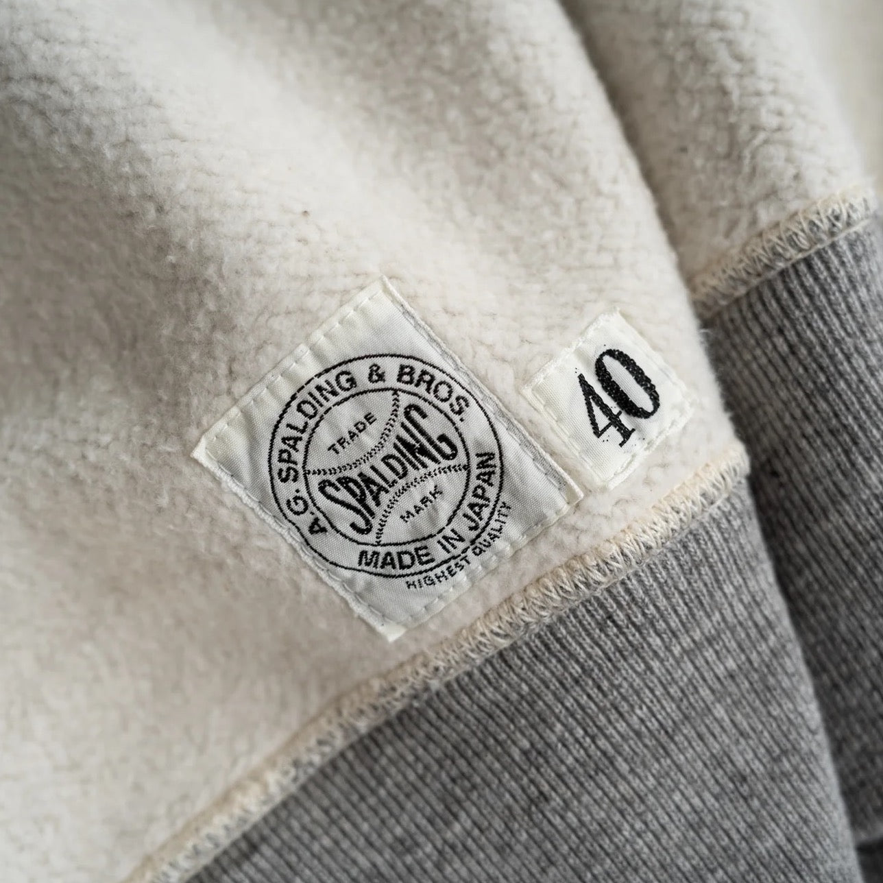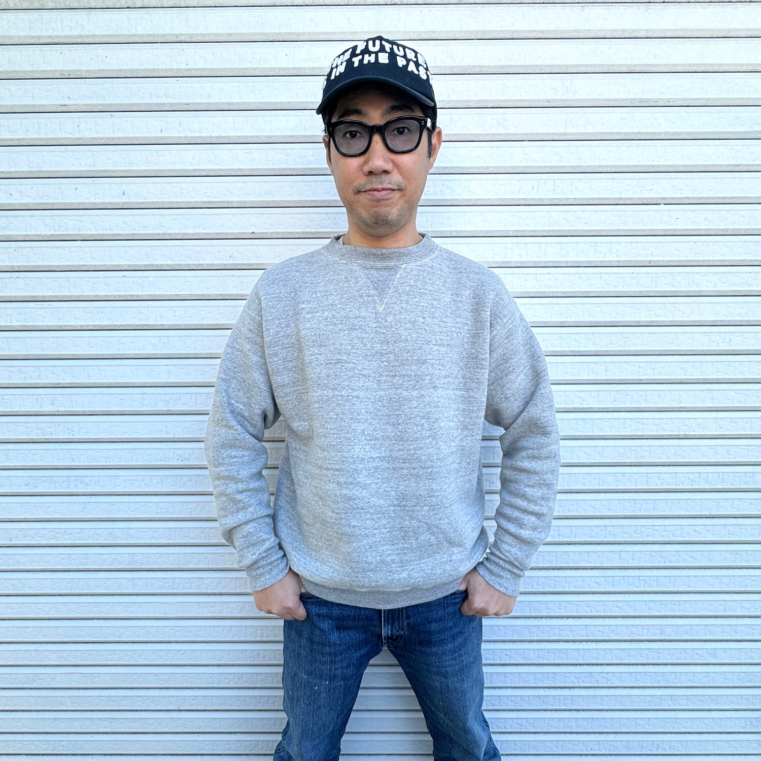 良いスウェットはずっと探していて最近はベタですがチャンピオンに落ち着いていて、それを覆したのがこのスポルディングのもの。知り合いの有識者からすすめられて着てみたら、まぁいいわけですよ。ビンテージっぽさは残しつつも現代の着こなしにマッチするシルエット、サイズ感。これがほんと絶妙なわけなんですよね。僕みたいな裏原宿ど真ん中で育っていて、かつ本物のアメカジも通った人間にも両方が成立してしまうような絶妙なシルエットなんですよね。つきなみな言葉ですが着心地がとてもいい。柔らかくて暖かくてとてもマイルド。見た目はスウェットでも着心地はセーターに近いのかな。よくよく聞いてみるともうこの生地を作れる工場は世界でも少ない。1日に20メートルしか織れない貴重なスウェット生地なんだとか。