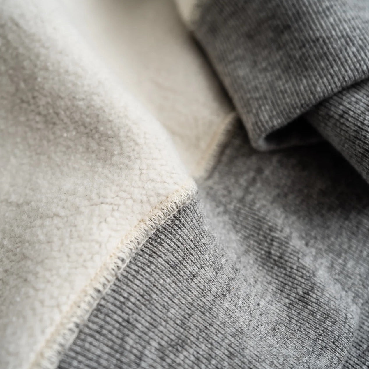 1930年代のウール/コットンブレンドのスエットが原型。前後両V仕様、袖口リブ形状が特徴的。和歌山産吊裏毛生地を使用。リブは無縫製の筒リブを使用。日本製。