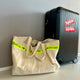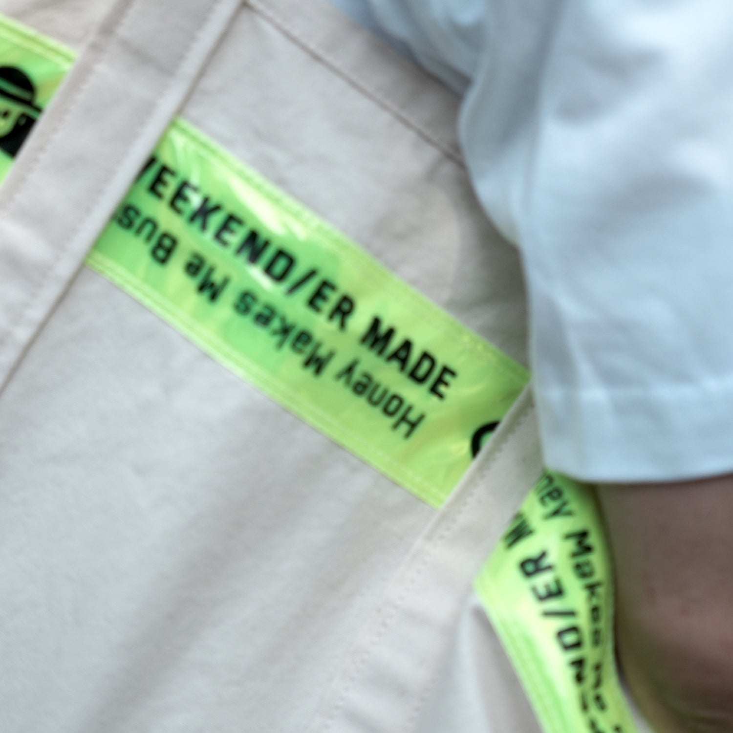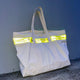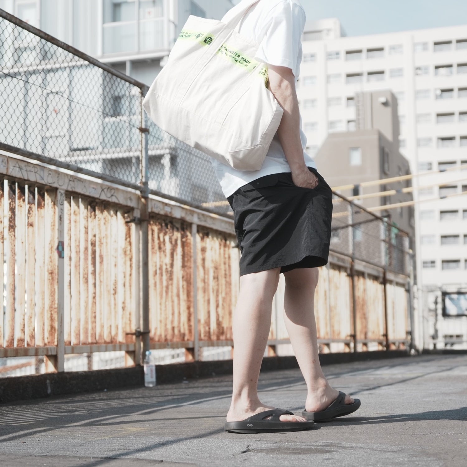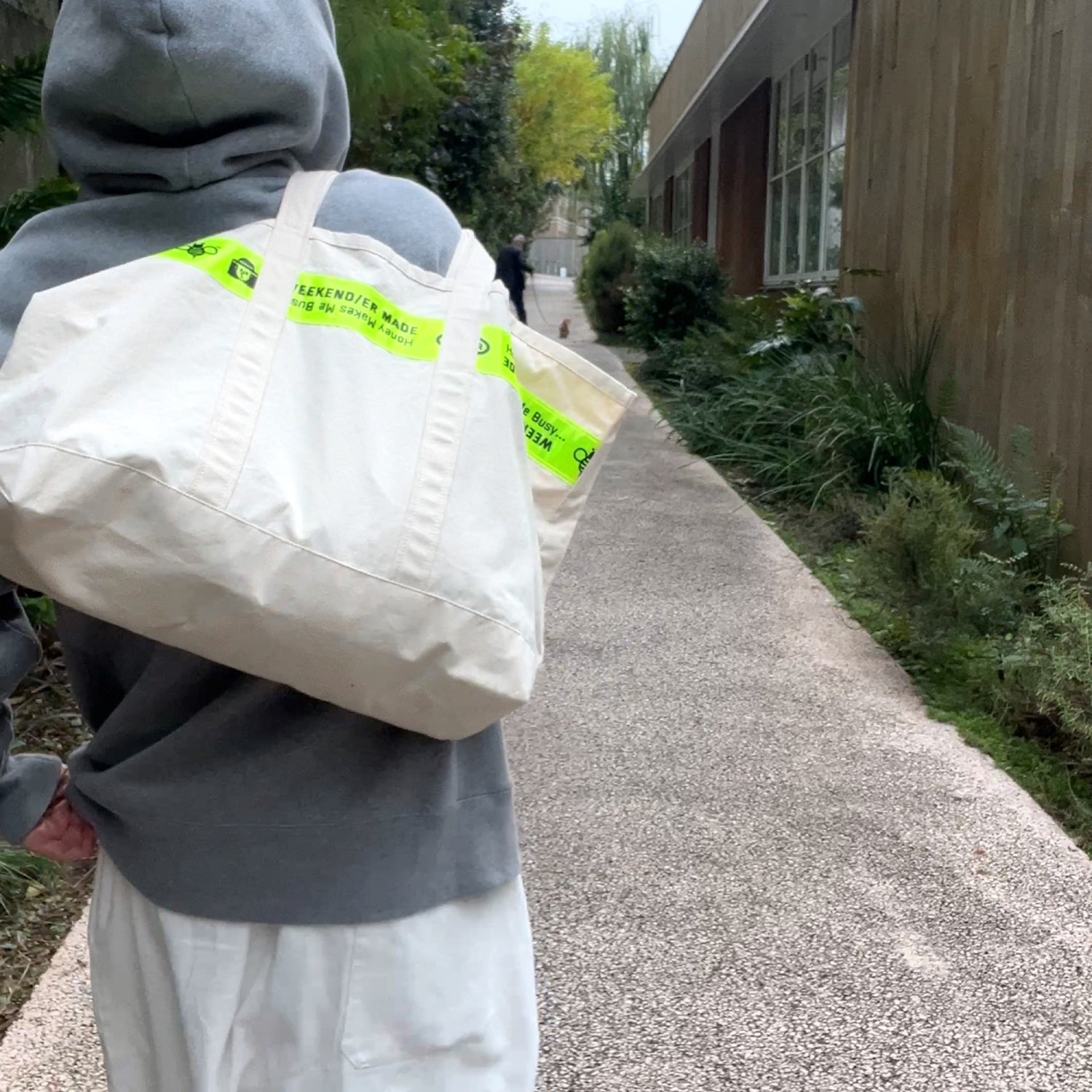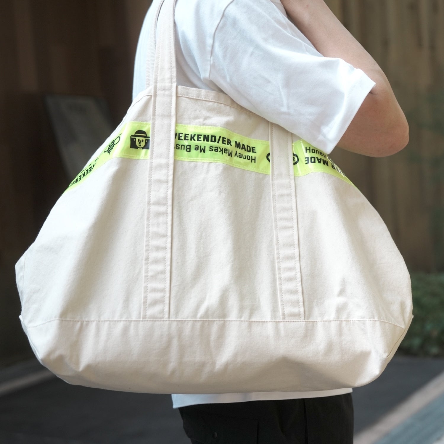 トート好きに応えるためにつくった1枚。シンプルだけど、ありそうでなかったデザイン。軽量オンスのコットン帆布に、リフレクターテープを大胆に組み合わせた、ミスマッチな素材使いが新しいトートバッグです。サイズ感はたっぷり大容量。仕事帰りのジムも、2泊くらいの旅行も余裕。内ポケットには、ウェットスーツのような合成ゴム素材を採用。タブレットやPCの持ち運びにも安心なつくりにしました。使いやすさも、価格も、しっかり優秀。新しいトートを買っても、結局これが一番使うやつでしょう。