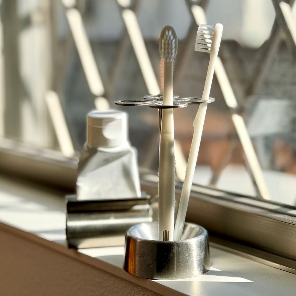 歯磨き粉の最後の方のひと絞りって、地味にストレス。そんな地味ストレスを手放せる、名アシストがこちら。残り7割くらいになると自立してくれるのが最高。これがあるだけで、洗面台がちょっとスッキリ見えるんです。歯ブラシホルダーと一緒に使えば、清潔感コンビの完成。もっと早く買っておくべきだったやつ。