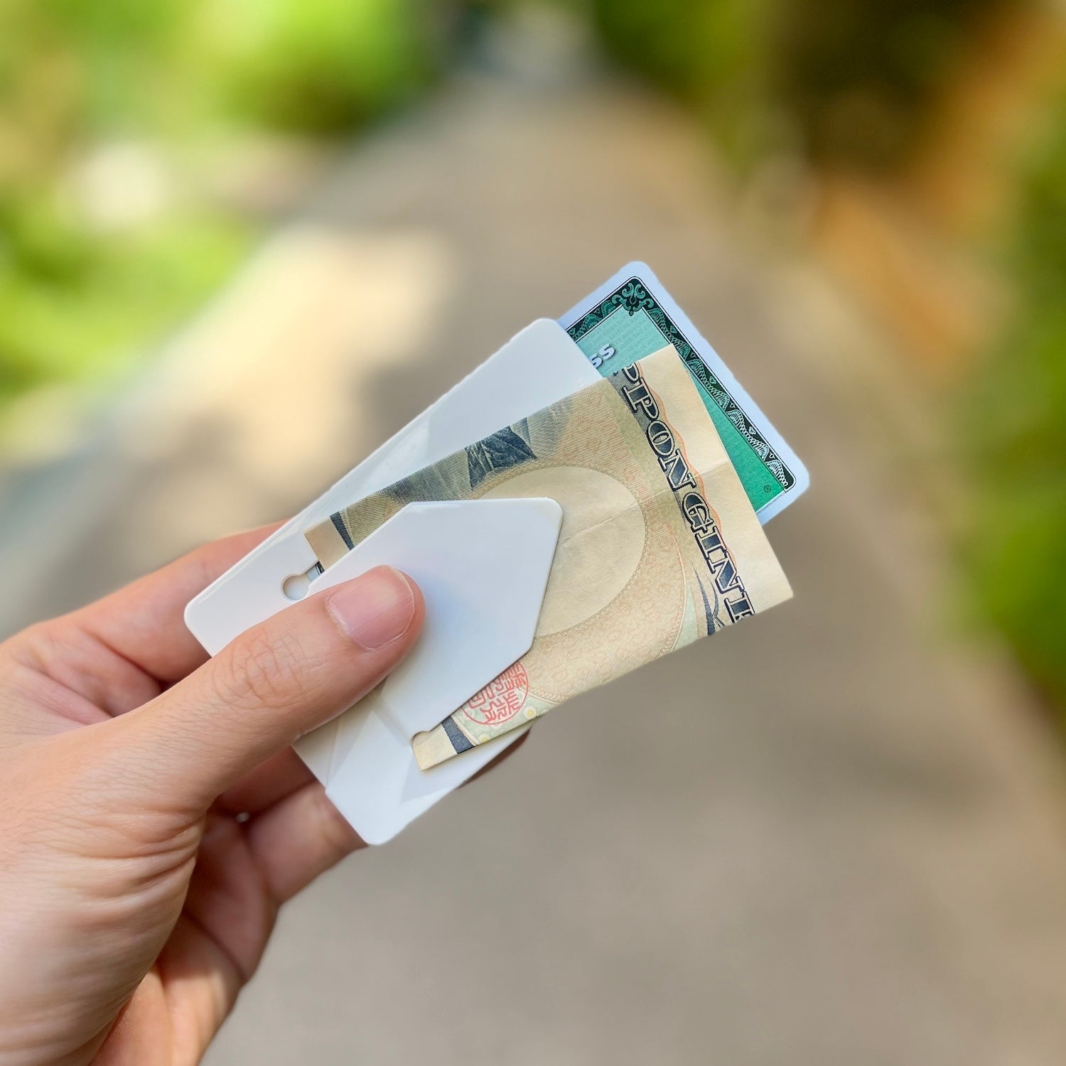コイン、カード、お札。すべてをスマートに収納できる、カード型のミニマルウォレットです。カードポケットにはクレジットカード1枚、マネークリップには折り畳んだお札を10枚まで挟むことができます。コインケースには小銭のほか、カードだけなら2〜3枚収納可能。鍵やピルなどの小物も収まり、想像以上に使い勝手◎。最小限なのに、ちゃんと足りる。ミニマルウォレットの“最小最強”は、このカード型でした。