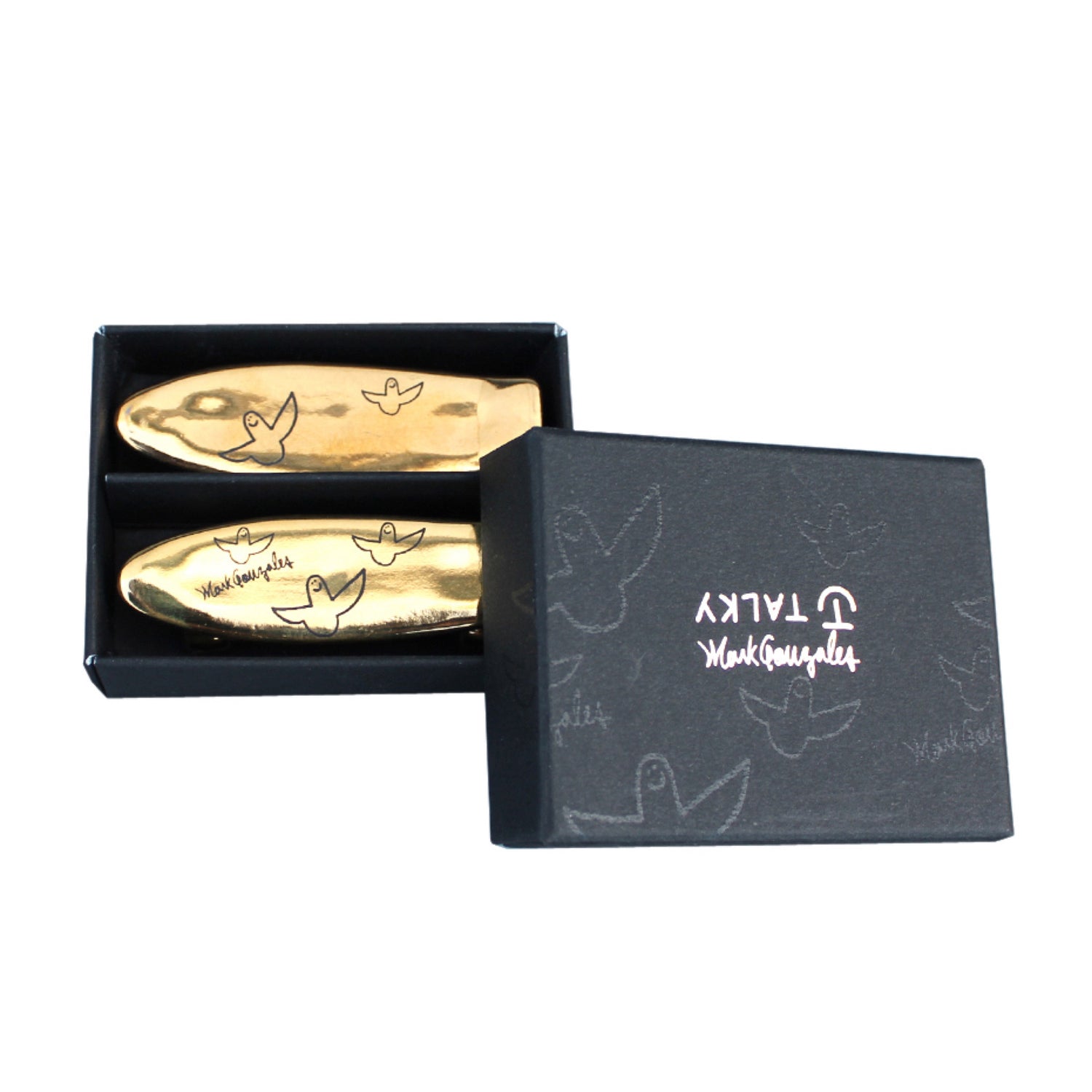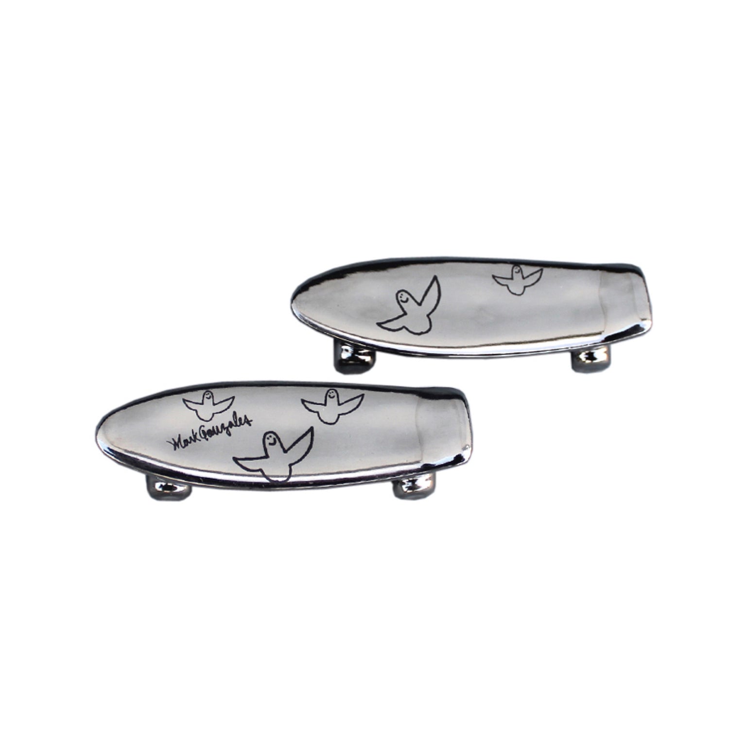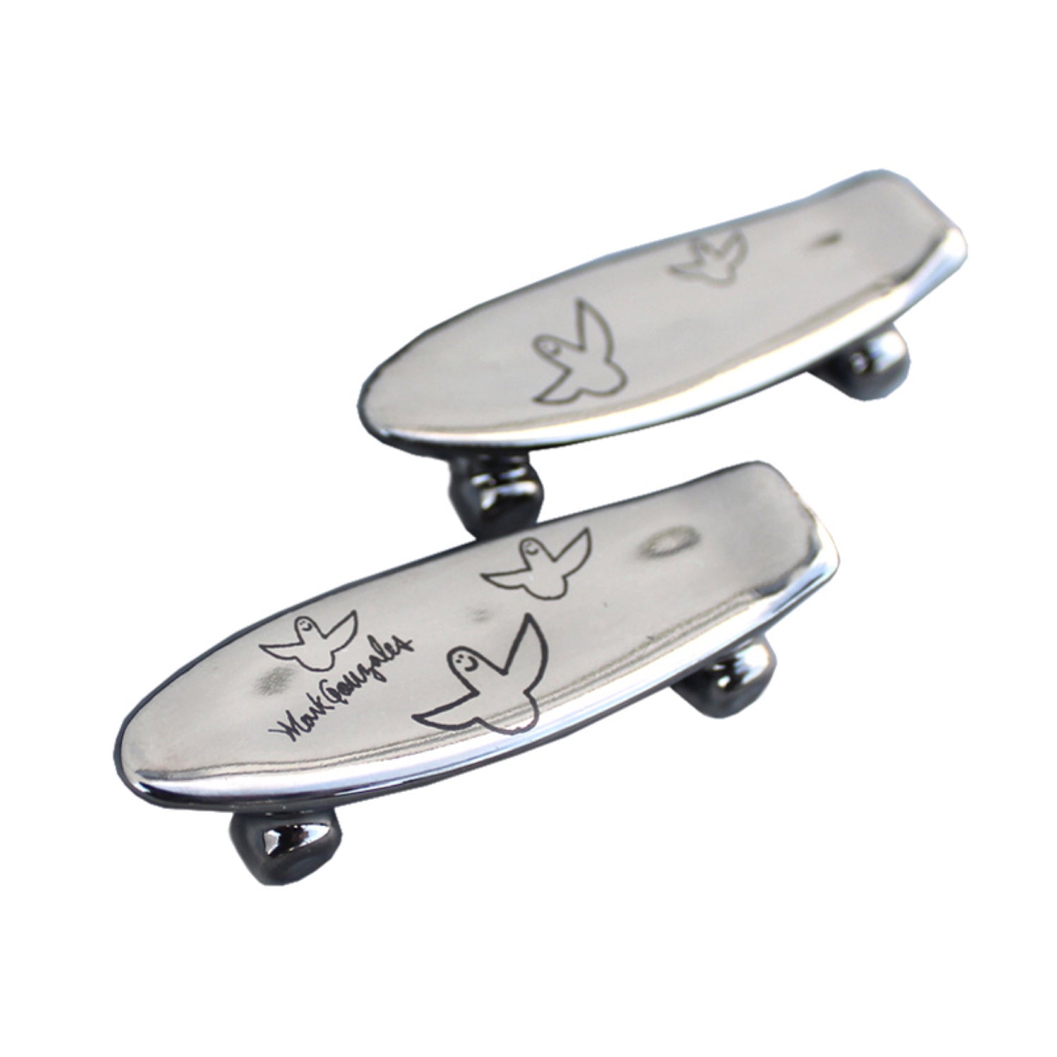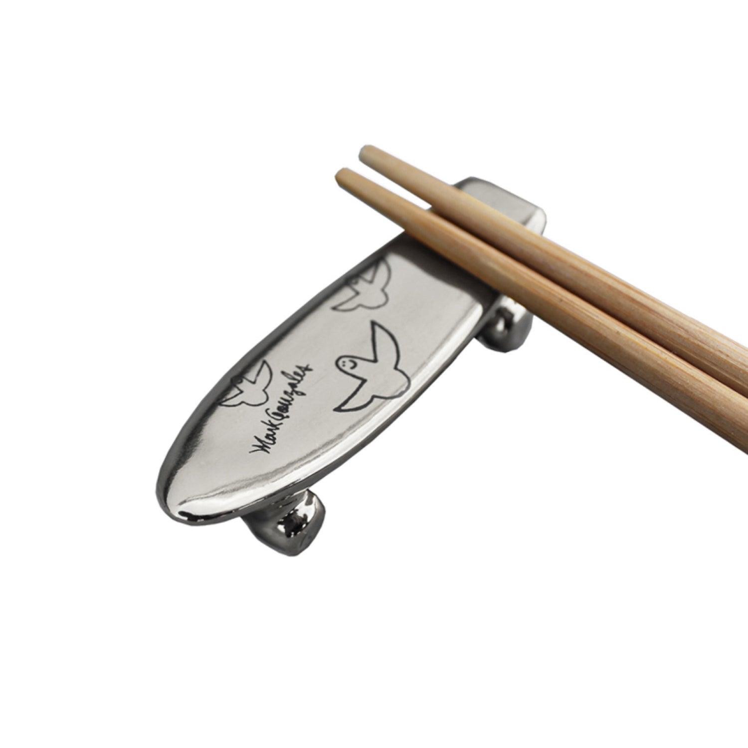人生の半分以上スケートボードしてきた私は、友達やお世話になった方にプレゼントする機会が増えてきた!自分らしい物を贈りたいなぁ?そんな時に出会えたのがこのTALKYのスケートボード箸置き!何ってたってスケートボードに箸を置くという発想とユーモア、思いもつかなかった!こちらはMark Gonzales別注。御賞味あれ。