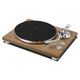 内蔵のBluetoothトランスミッターを使ってBluetoothヘッドホンやBluetoothスピーカーで再生できるアナログターンテーブル。安定した回転を実現するアルミ・ダイキャスト製プラッターや、簡単に好みのカートリッジに交換できるユニバーサル型ヘッドシェル、アンチスケーティング調整機構付きスタティックバランス型S字トーンアームを採用するなど、基本性能を重視しつつ、さらに内蔵のMM型フォノイコライザーアンプによりフォノ入力を持たないオーディオシステムとの接続も可能となっています。内蔵のBluetoothトランスミッターは高音質なワイヤレス再生が可能なQualcomm® aptXTM Adaptiveに対応。aptXTM Adaptiveに対応した最新のヘッドホンや Bluetoothスピーカーで高音質、低遅延での再生が可能です。カートリッジには高い読み取り精度で定評のあるオーディオテクニカ社製のVM型(MM型と同等)AT95Eを採用。お買い上げいただいてセットアップするだけで、すぐにアナログレコードの世界をお楽しみいただけます。ライフスタイルにマッチする上質感ある天然木目が美しいウォルナット突板オイル仕上げとなっています。