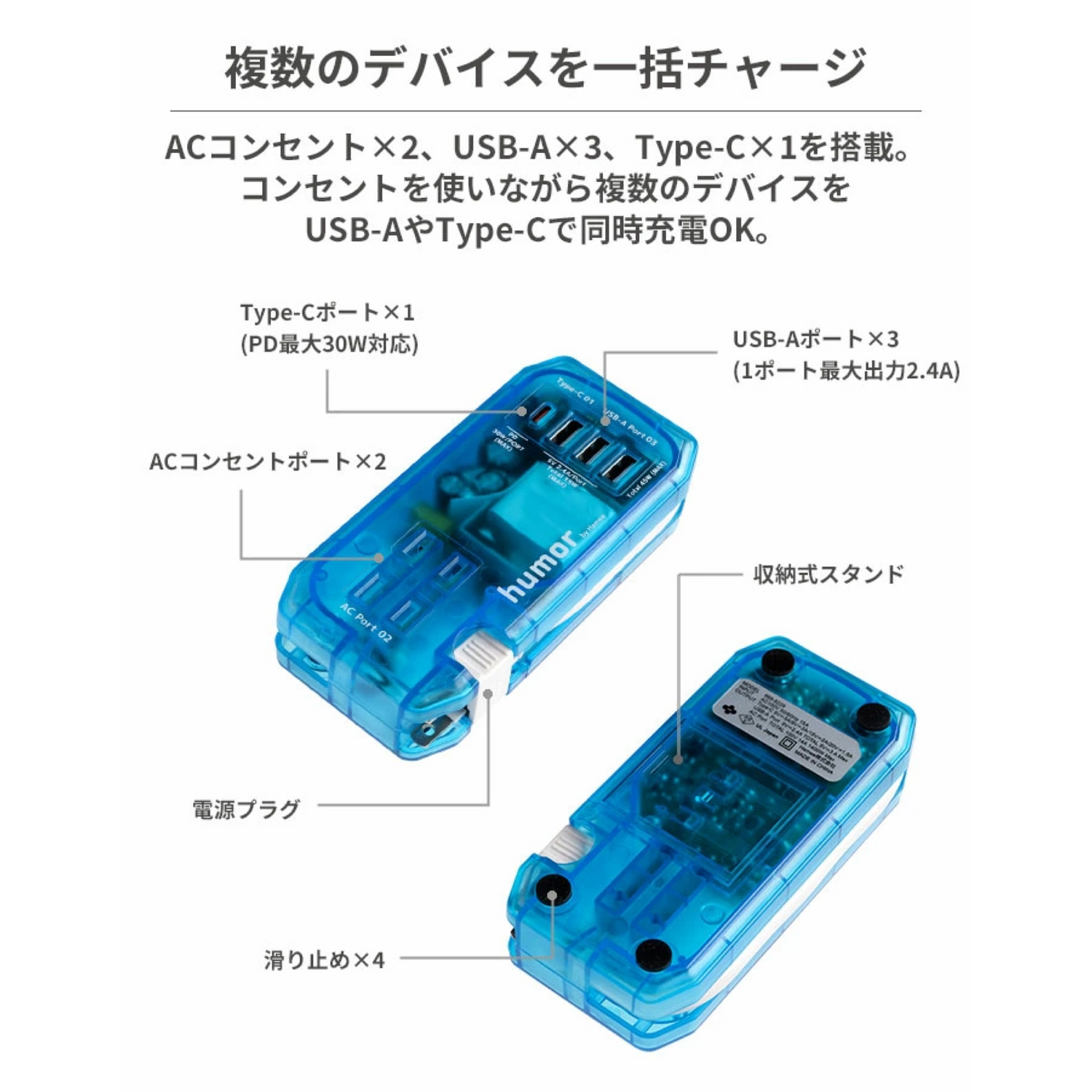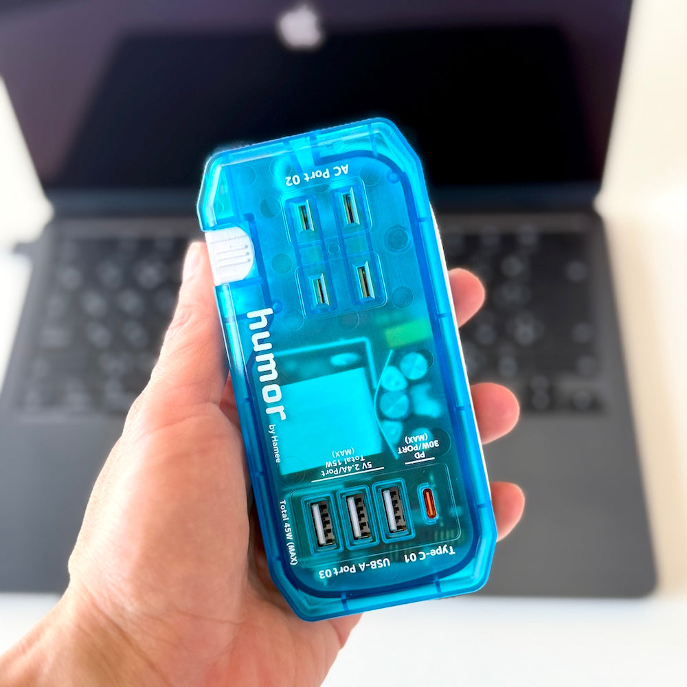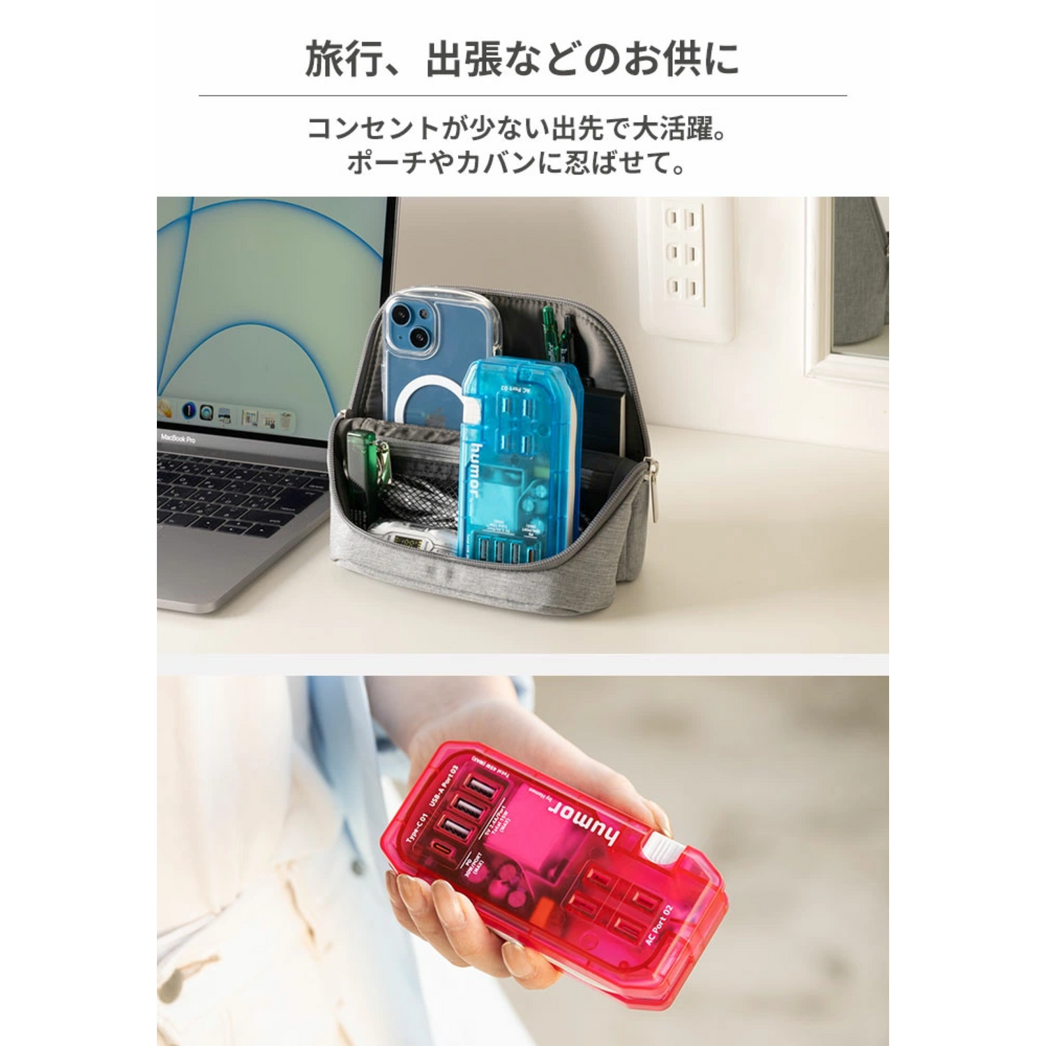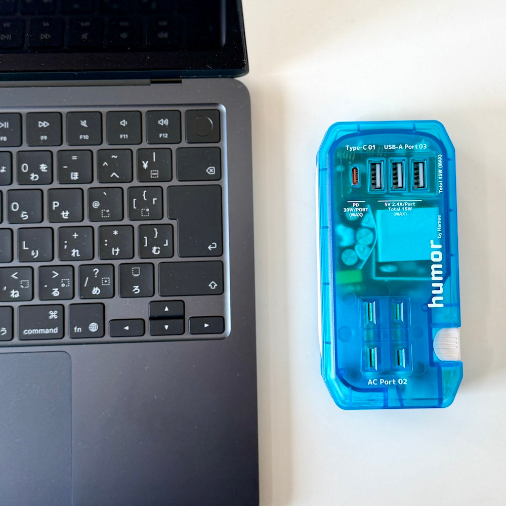 スマートにケーブルがまとまり、複数デバイスを同時に充電ができるシンプルなデザインの充電ステーションです。コンセント×2、USB TypeA×3、そしてUSB TypeCの差込口が一台にまとまっており、友人とのカフェでのミーティングに重宝しています。僕はパソコン、スマホ、Bluetoothイヤホンをつなぐ事が多くて、この充電ステーションがあれば複数デバイスの充電が、同時に素早くかつ効率的におこなえます。あらゆる電子機器を扱う時代、仕事のデスク周りやご家庭の充電プラグが、すっきり片付けば気持ちいいですよね。
