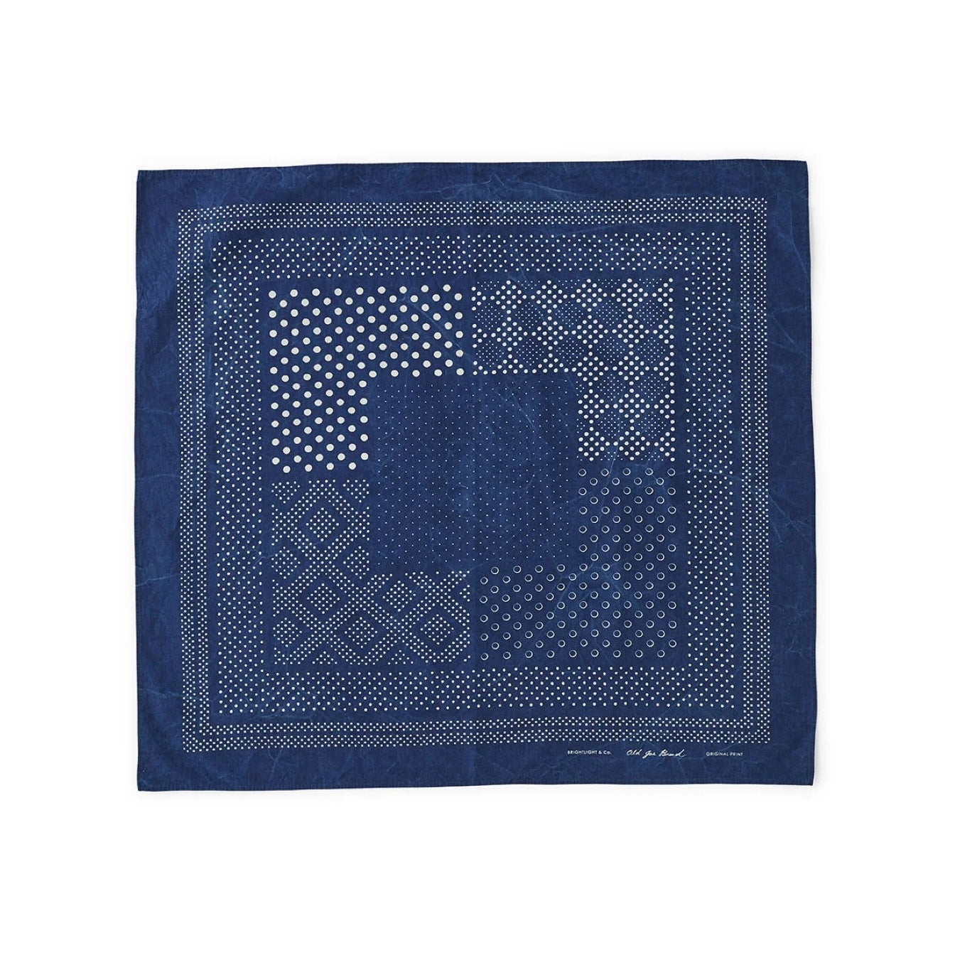 私たちの定番のプロダクト、オリジナルテキスタイル、クオリティのバンダナ。チーフ代わりにポケットに挿したり、バンダナの様に首に巻いたりと使い勝手の良いピースとなります。アメリカの古き良きアーカイブピースのデザインをもとに再構築されたインディゴキャリコパターンは味だし作業を施しており、くたびれた表情が雰囲気を盛り上げてくれます。