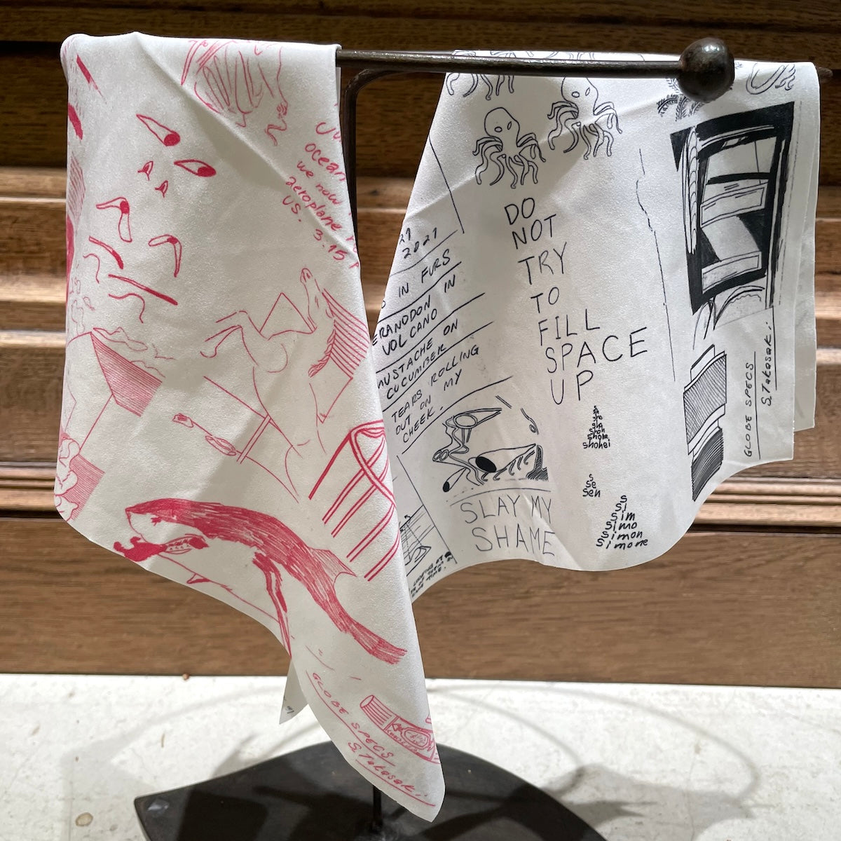 私の友人でもあるSHOHEIさんのアートに魅了され、グローブスペックス全店の店内にSHOHEI さんのアート作品が飾ってあります。以前、遊びにいった彼のアトリエで見た彼のインスピレーションノートを見た時、鉛筆で書かれたスケッチに味があり、とてもかっこいいと思いました。SHOHEIさんの息子さんも書いたいたずら書きも混じっていて見ていて楽しいです。SHOHEIさんと話す中で「これをメガネ拭きにしたら楽しいんじゃない?」と始まったプロジェクト。お気に入りのアイウェアをSHOHEIさんデザインのメガネ拭きでお手入れをしてみませんか?