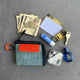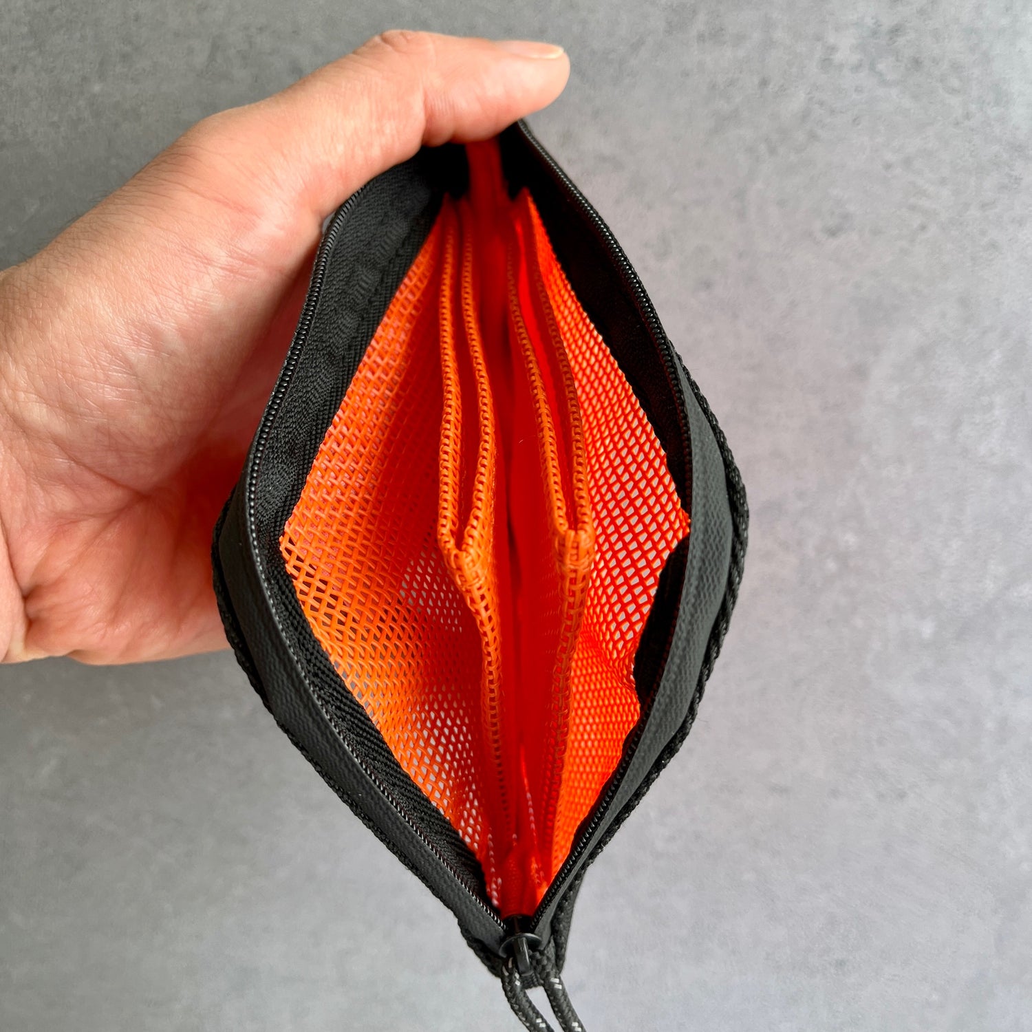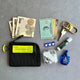ポーチ好きで色々持っていますが、こちらは過去最高に使いやすいです。マチがないポケットもモノがごちゃごちゃにならず取り出しやすい。また2つのポケットの間も使えるので、計5つの収納スペースがあると考えていいと思います。頭痛薬やサプリメント、シート状のトローチ、目薬、絆創膏、印鑑などがスッキリ収まってとても気持ちいいです。財布は別に持っていますが万が一に備えて真ん中に千円札を数枚挟んでいます。とても使い勝手が良いのでミニ財布として色違いをもうひとつ買うか検討中です。
