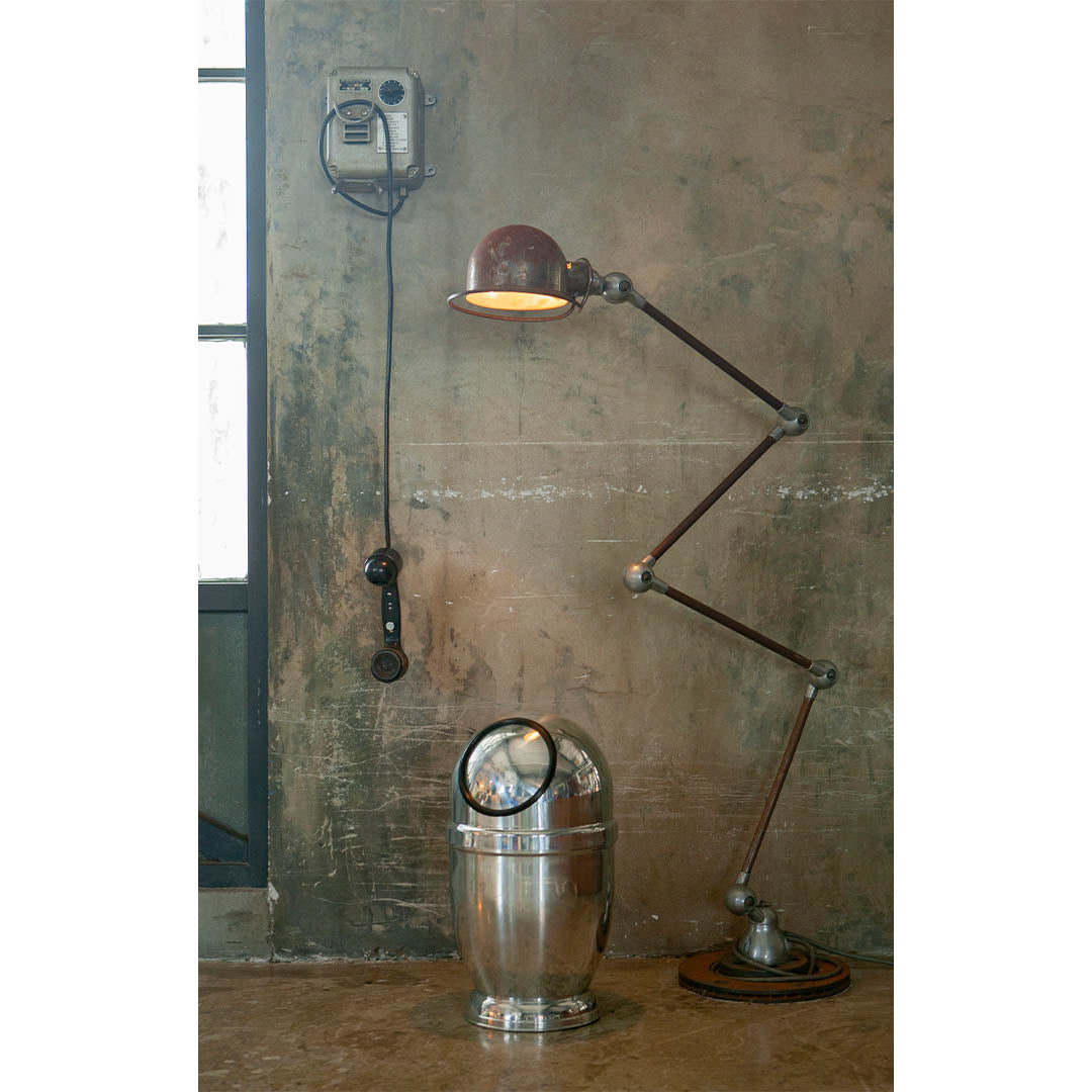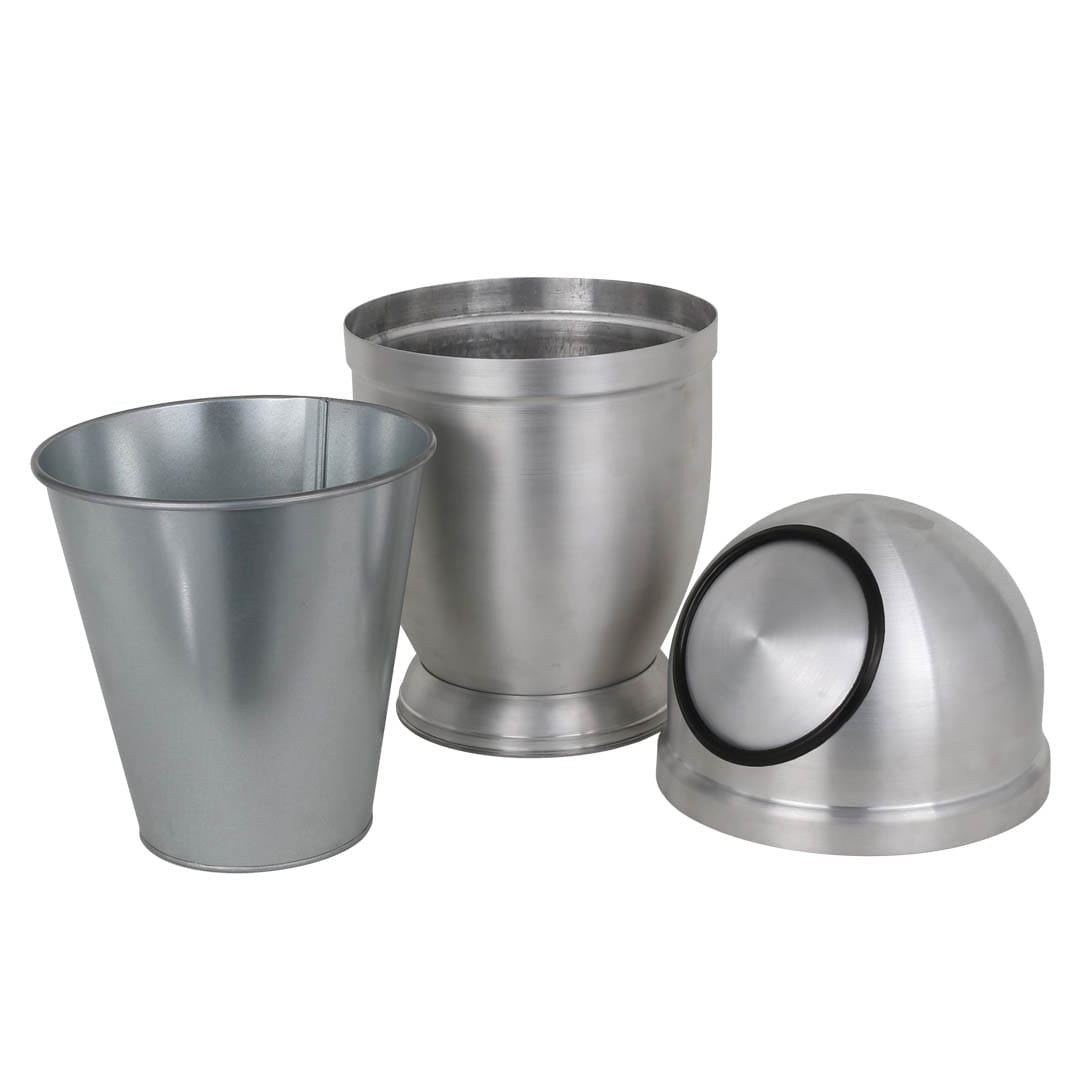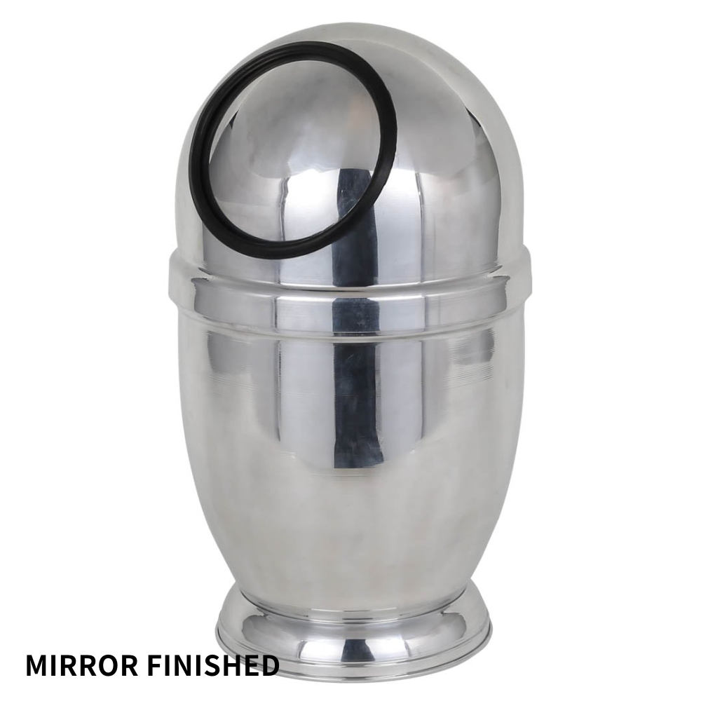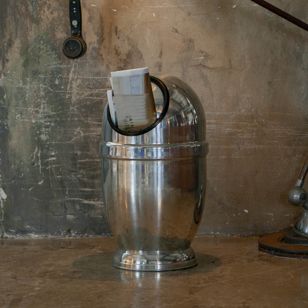 型から研磨まで丹念に作り上げられたアルミ製のゴミ箱。スペーシーなメタリックボディ、特徴的なドーム型のフォルムが印象的。プッシュ式の蓋が、まるで宇宙船への乗り込み口かと思えるほど、ロマンに溢れたプロダクトです。その仕上がりを前に、モノとしての価値を見出さずにはいられません。Lサイズはインナーバケツが付属。