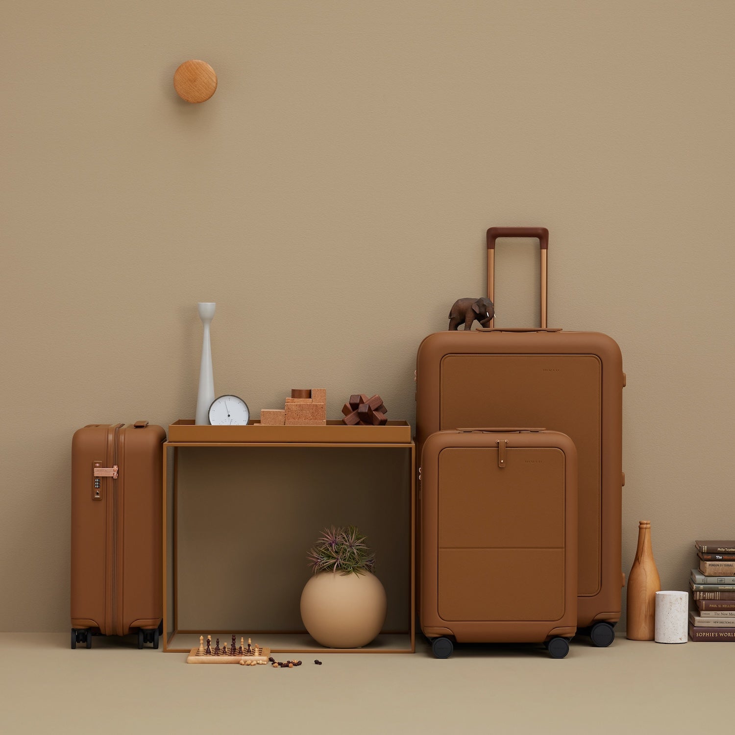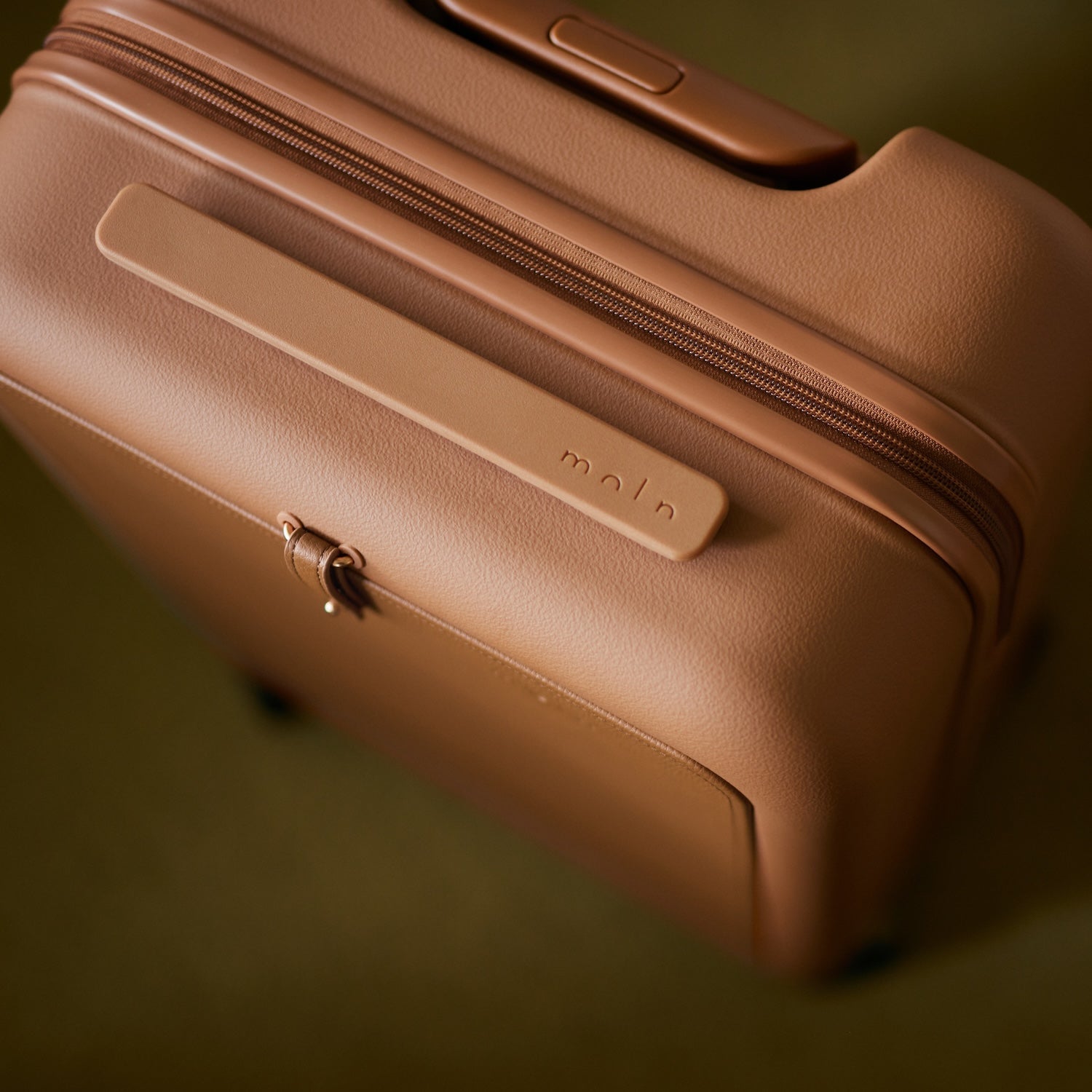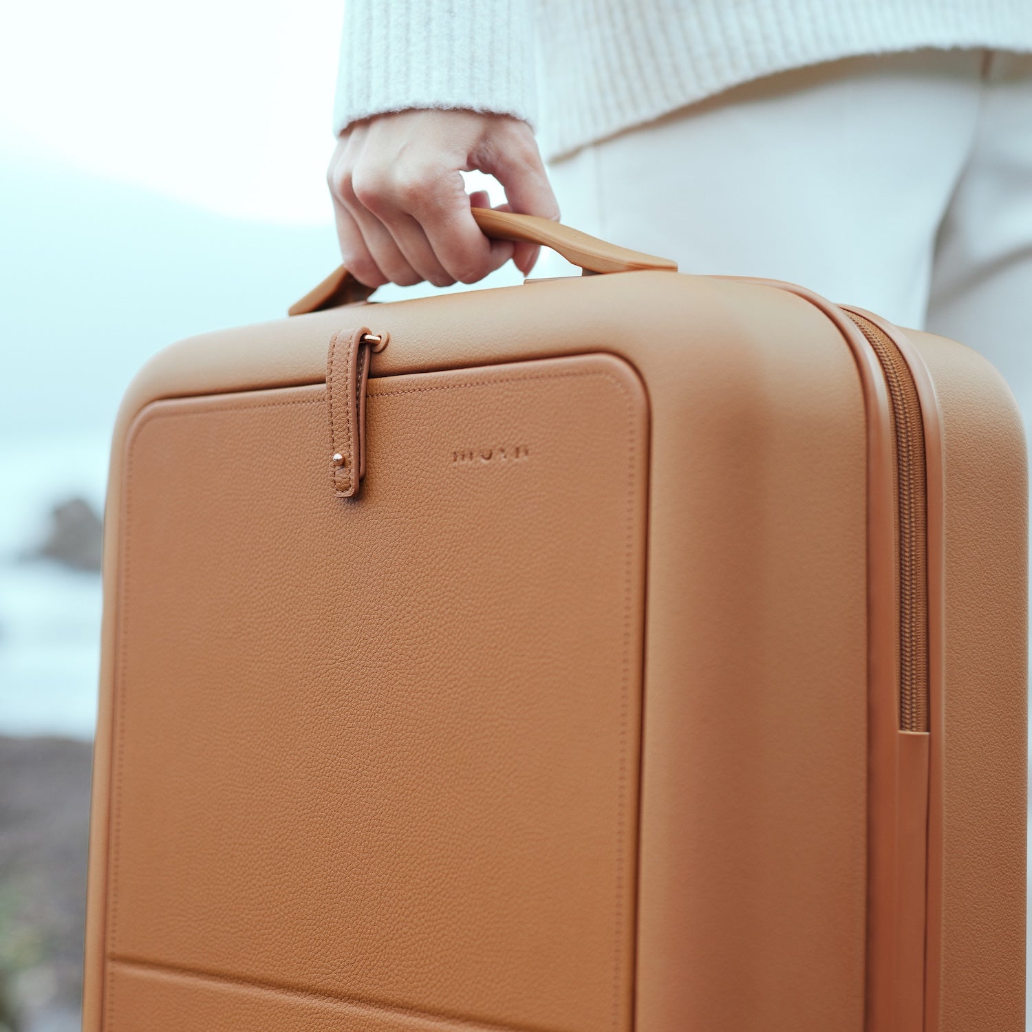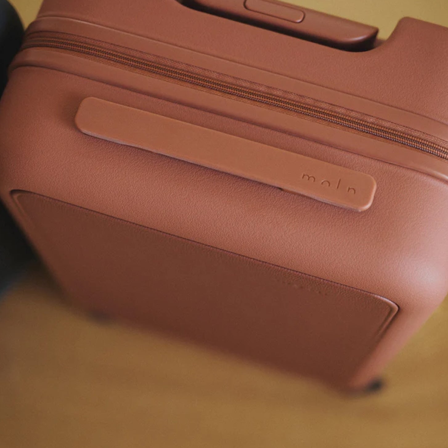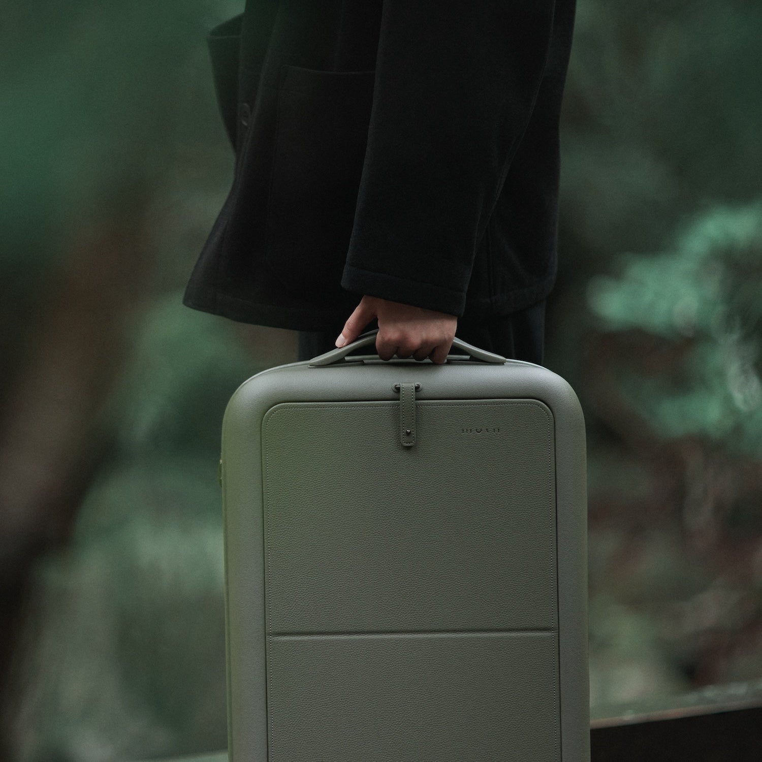 molnのスーツケースは機能的なのに、まるで職人が手がけたような味わいのあるフォルムが特徴です。金具やステッチ、ベルトなどの細部までこだわり、手に馴染んだ革のバッグのように、自然に持ち歩けるデザインを目指しました。地球が生み出す色からインスピレーションを受けた、カラーパレットです。