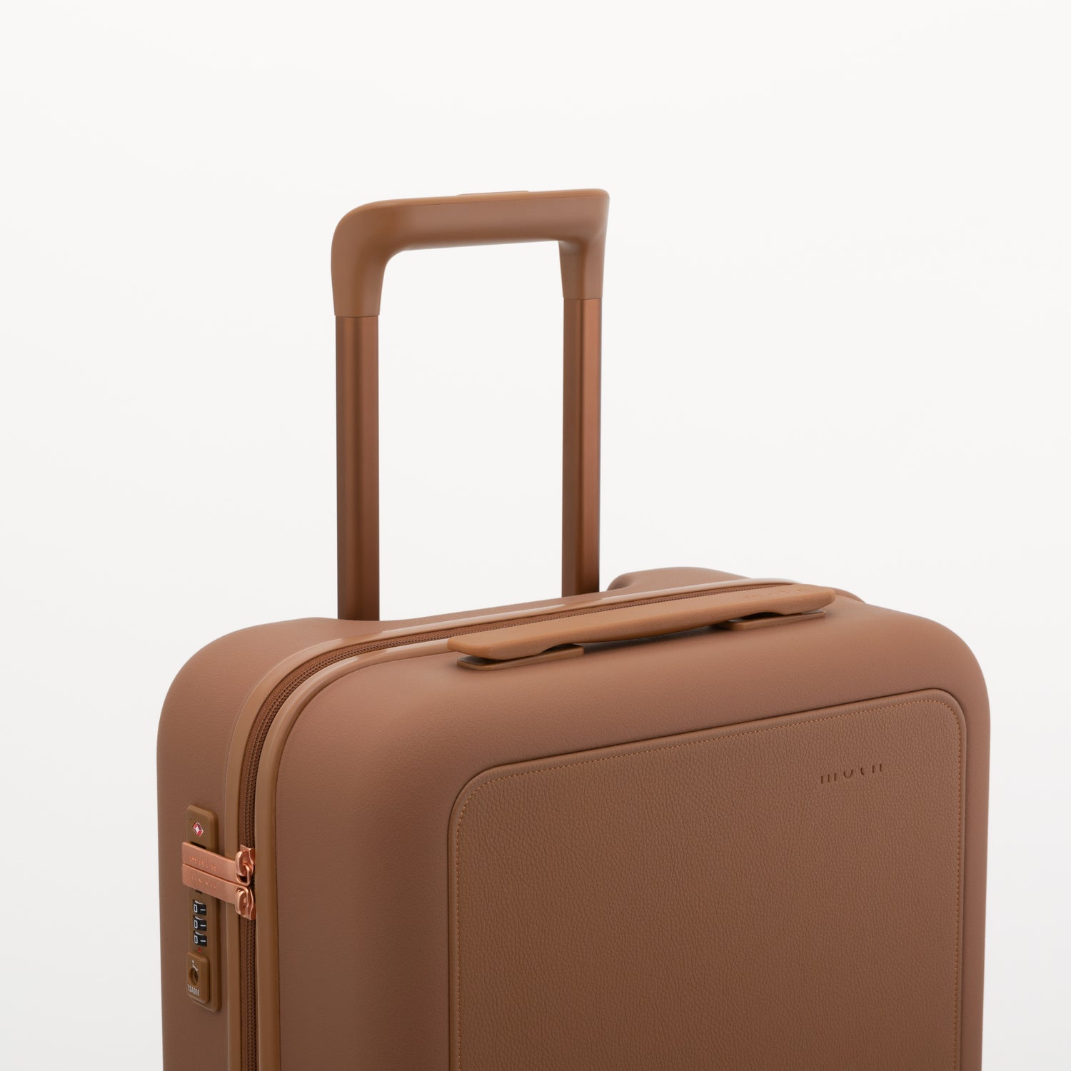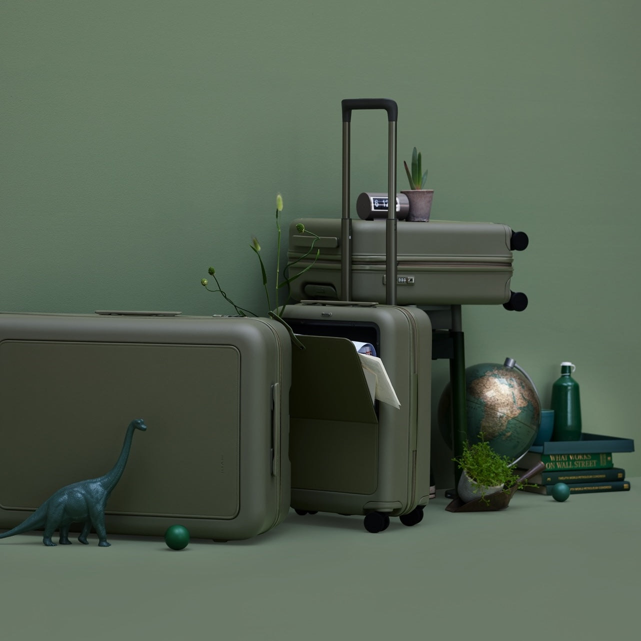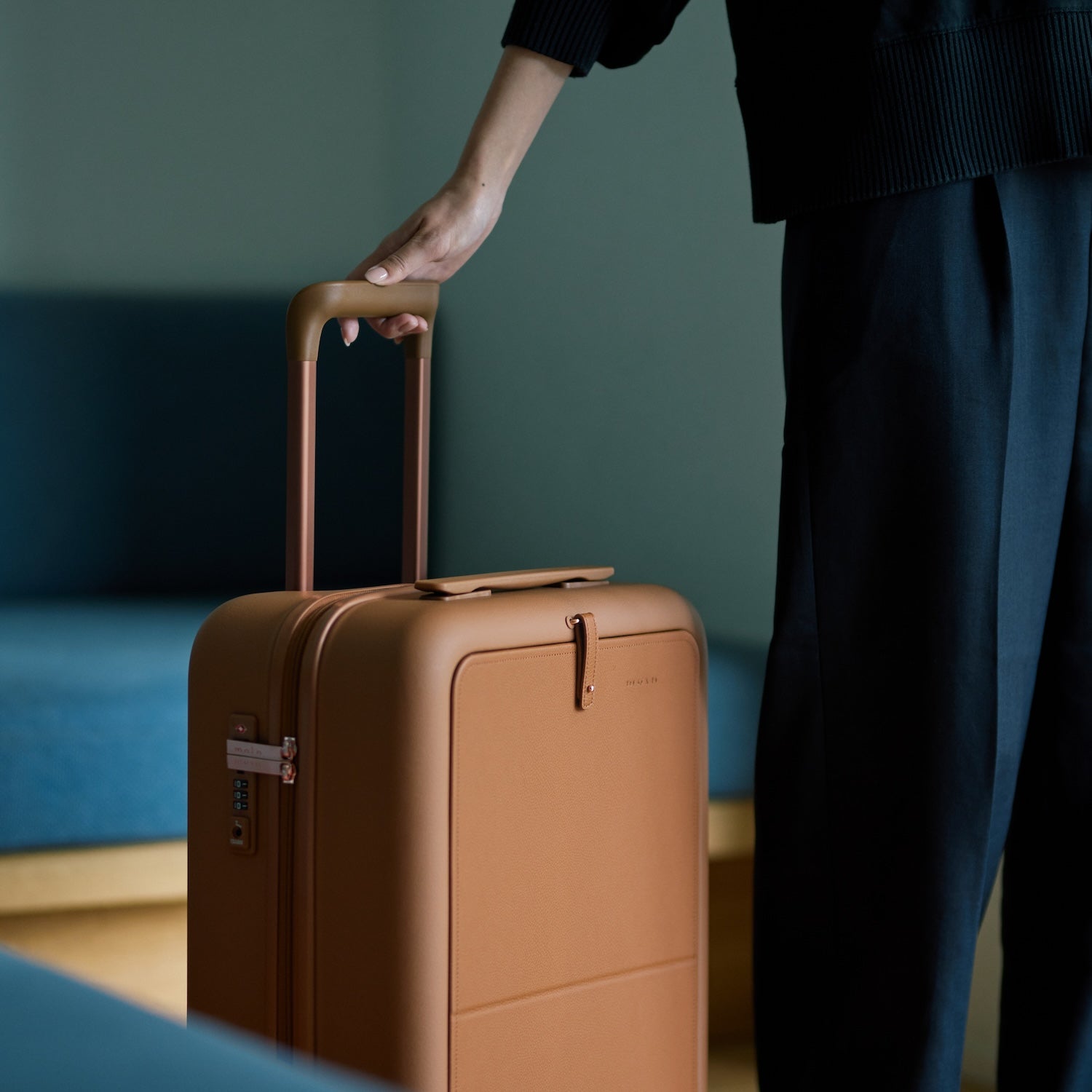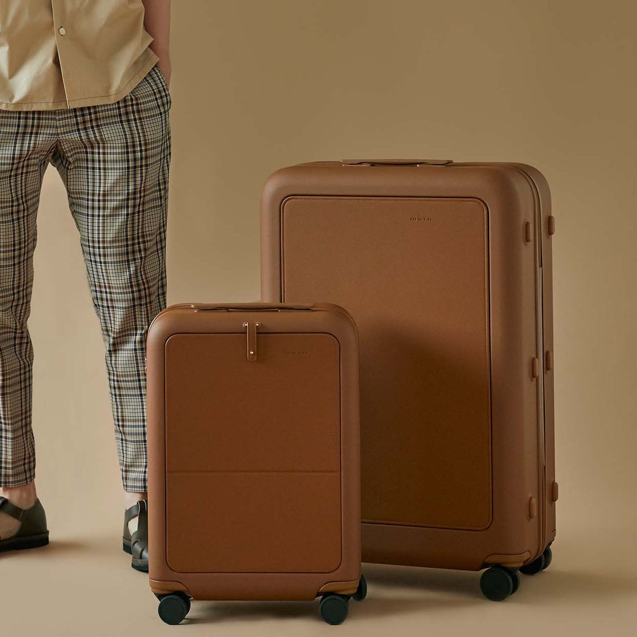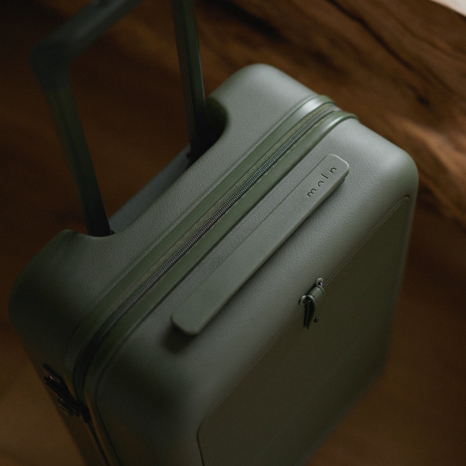 molnのスーツケースは機能的なのに、まるで職人が手がけたような味わいのあるフォルムが特徴です。金具やステッチ、ベルトなどの細部までこだわり、手に馴染んだ革のバッグのように、自然に持ち歩けるデザインを目指しました。地球が生み出す色からインスピレーションを受けた、カラーパレットです。