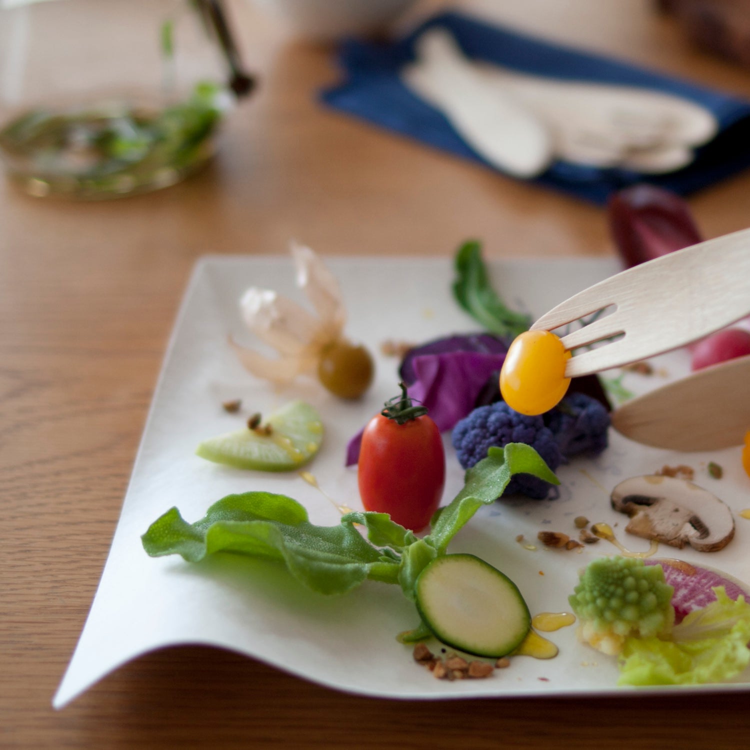 料理を美しく引き立たせ、豊かであたたかい空気を創りだすような紙の器をつくりたいという想いから、WASARAは生まれました。