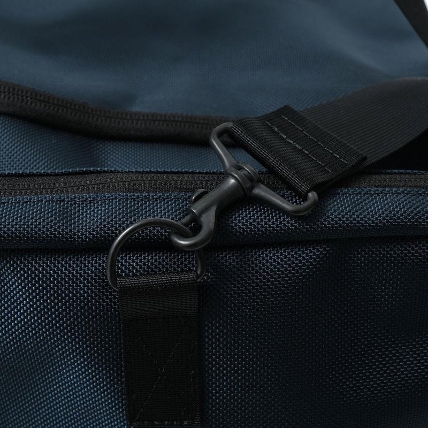 耐久性の高いCORDURA ballistic 1680Dを使用したダッフルバッグ。開口部分は広く、サイドにも収納スペースがある大容量な設計。フロントのメッシュポケットには財布や鍵など、すぐ取り出したいものを多く入れれる収納スペースとなっております。また、ハンドキャリーから肩掛けできるストラップを付属。背面にはスーツケースの持ち手に通せるベルトを搭載しており、遠出から普段使いまでと実用性に優れております。
