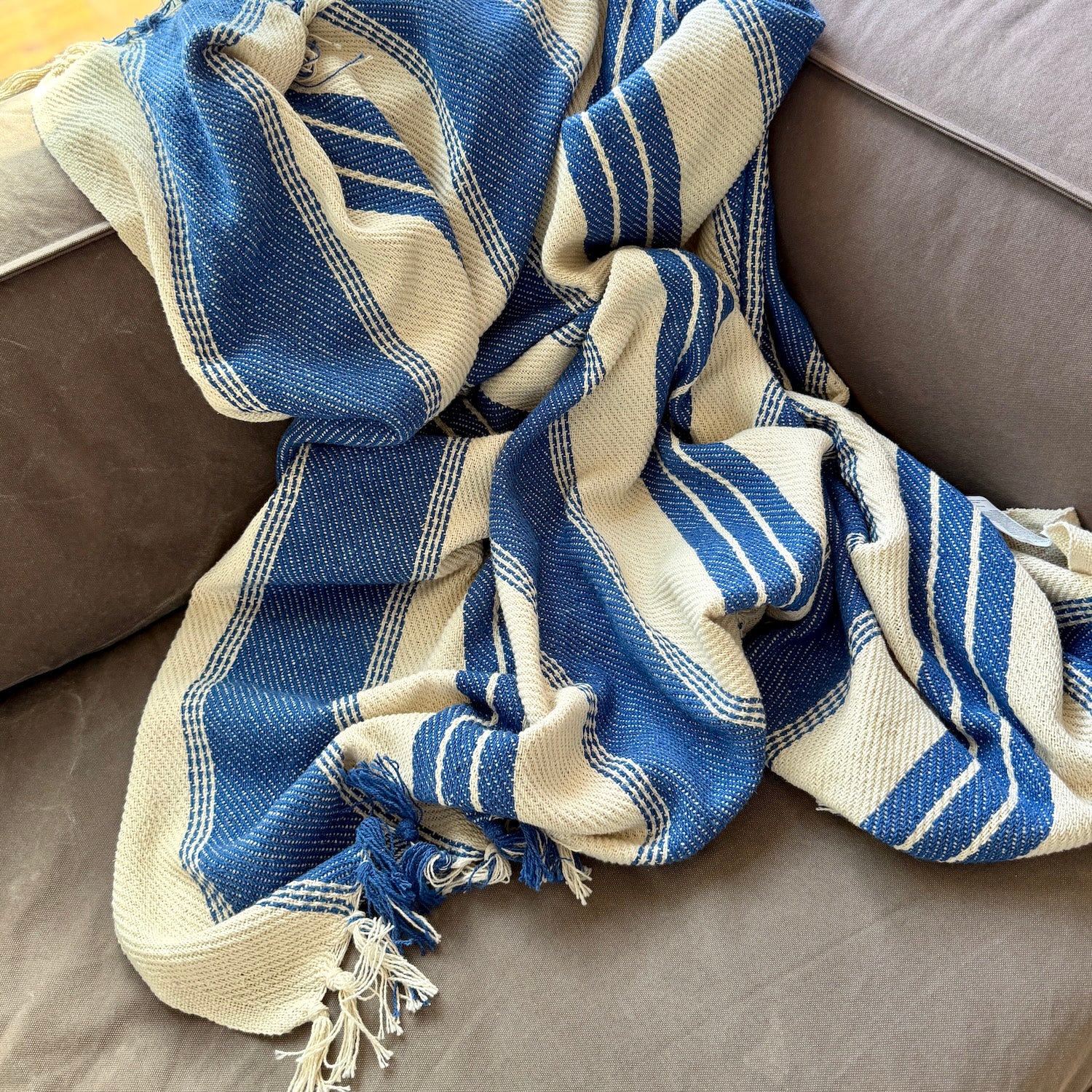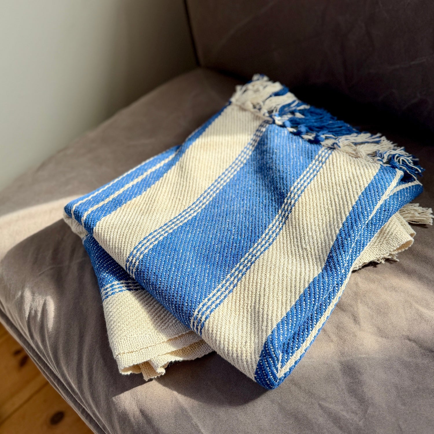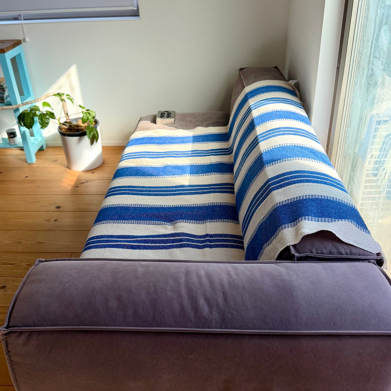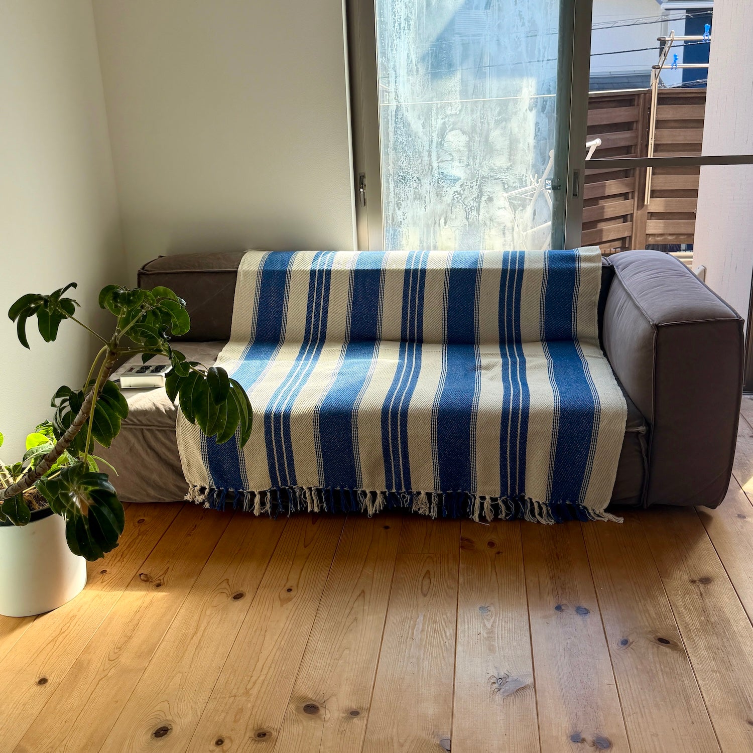 マリン感の絶妙さがドンズバに刺さったツイルブランケット。こういう、ちょっと可愛げがあって雰囲気あるものに弱いんです。ソファにかけてみたら、不思議と空間がいい感じにまとまる。“なんかちょっとオシャレ”って、こういうののことかも。それ以来、“寒いときに使うやつ”から“常に出しておきたいやつ”に昇格しました。いまや、うちのソファのオシャレ着です。(※ご購入前に必ずアイテム説明欄をご確認ください。この風合いも含めてブランドの魅力なので、ご理解いただけない方はご遠慮ください。)
