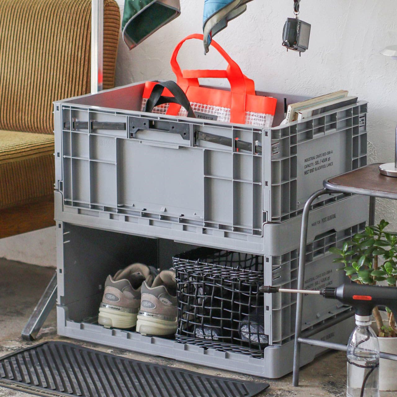 「収納」「運搬」「保管」様々なシーンで活躍する折り畳み式の収納クレート。