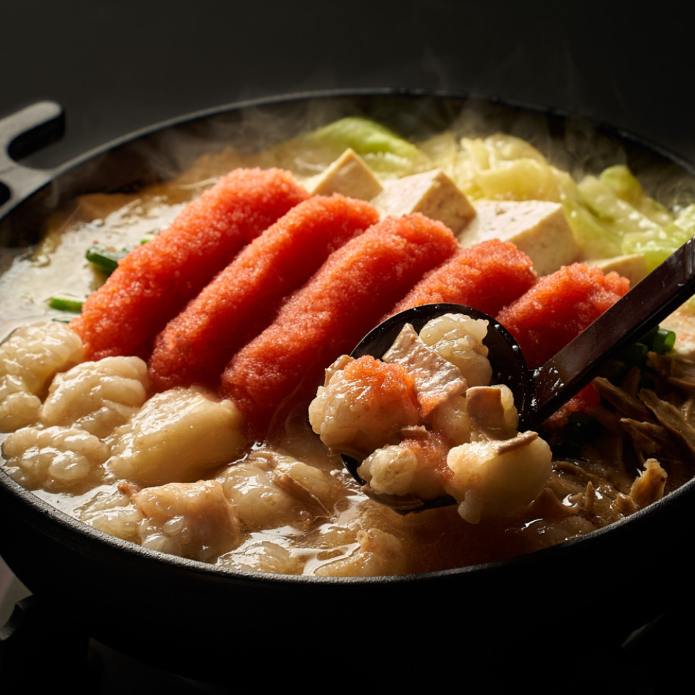 福岡・博多2大グルメ「明太子」と「もつ鍋」を1つの鍋で堪能できる。