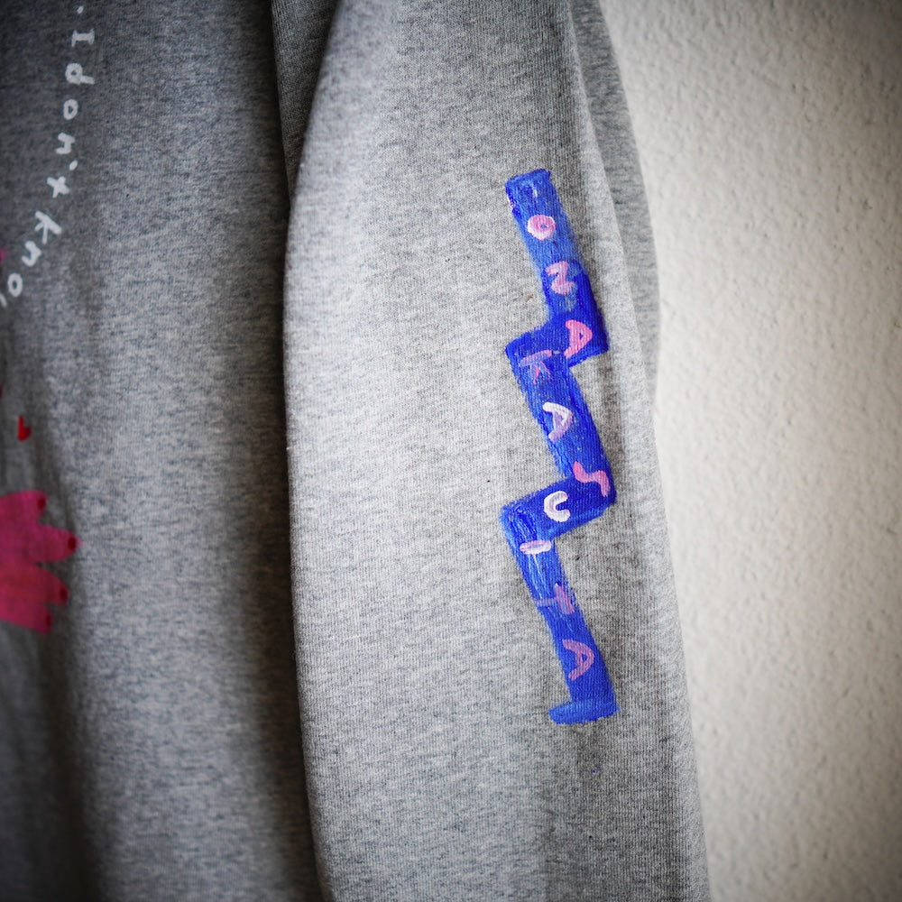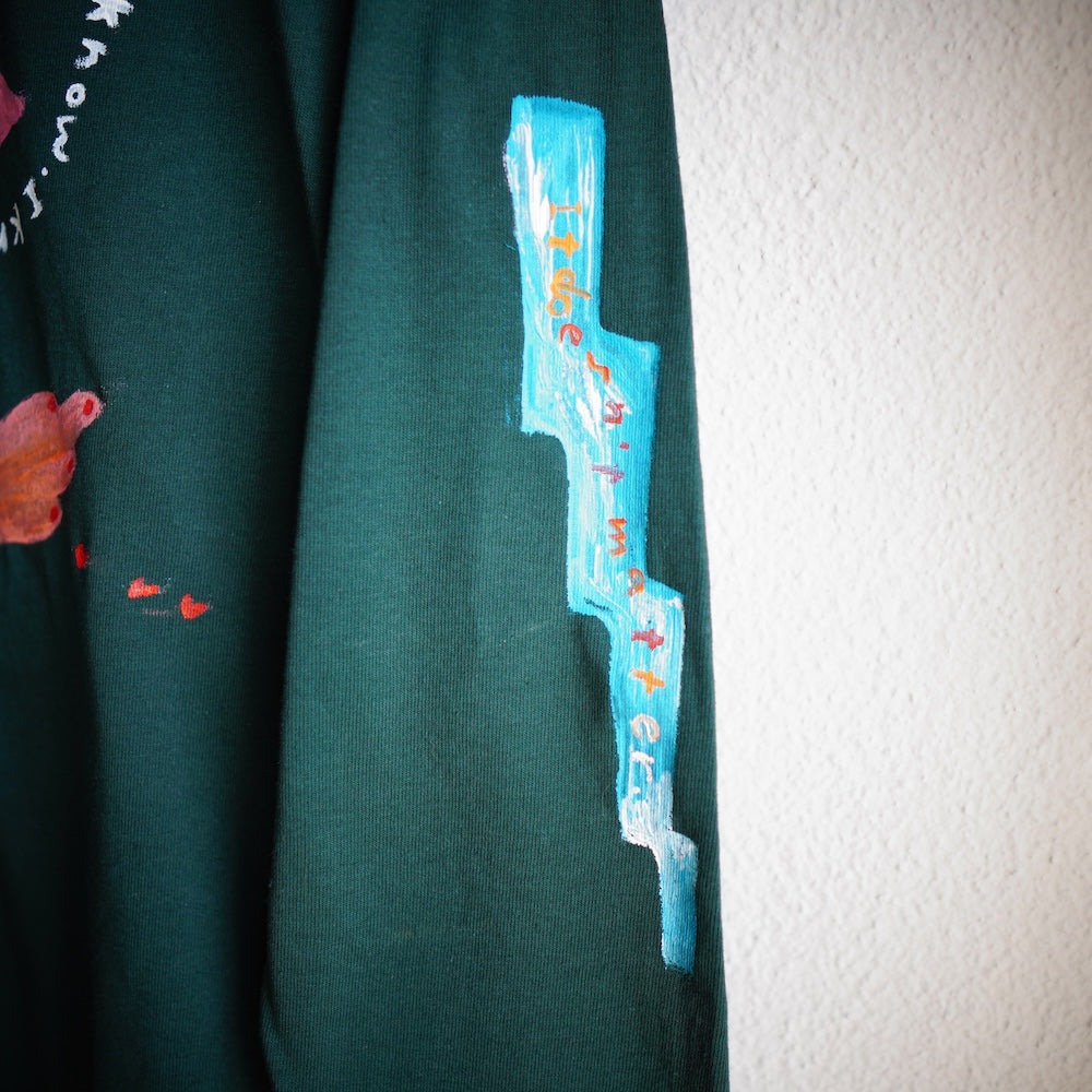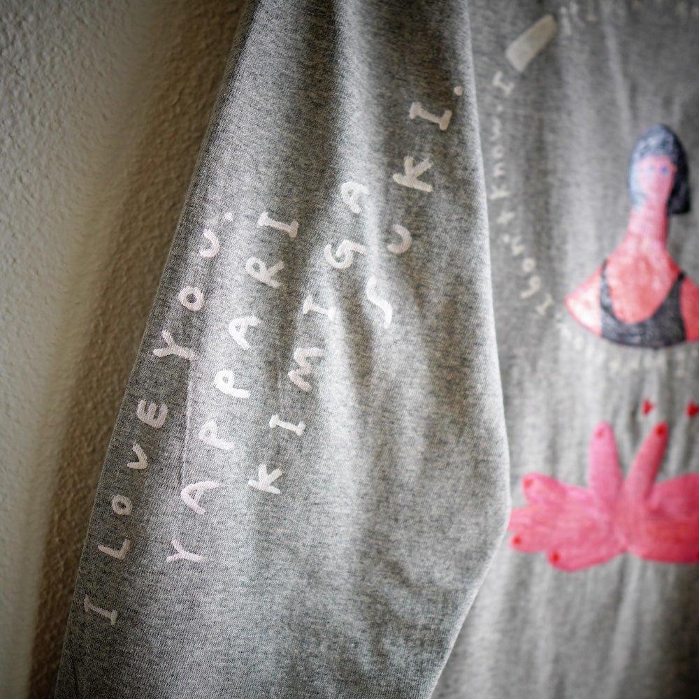 絵が持つエネルギーを、誰もが身に纏うことができるという発想に目から鱗。音楽もしかり、アート作品から得られるエネルギーやきっかけは、日常にそっと彩りを添えるスパイスのようなもの。IPPEI HAMADA氏の絵は、内側からジリジリと湧き上がる感情の渦や、人への慈しみ、そして世界の美しさを、ポップに軽やかに伝えてくれていると(勝手に)感じています。この絵は、誰かの日常と共鳴し、やさしい光を灯してくれる。そんな力を秘めていると思います。