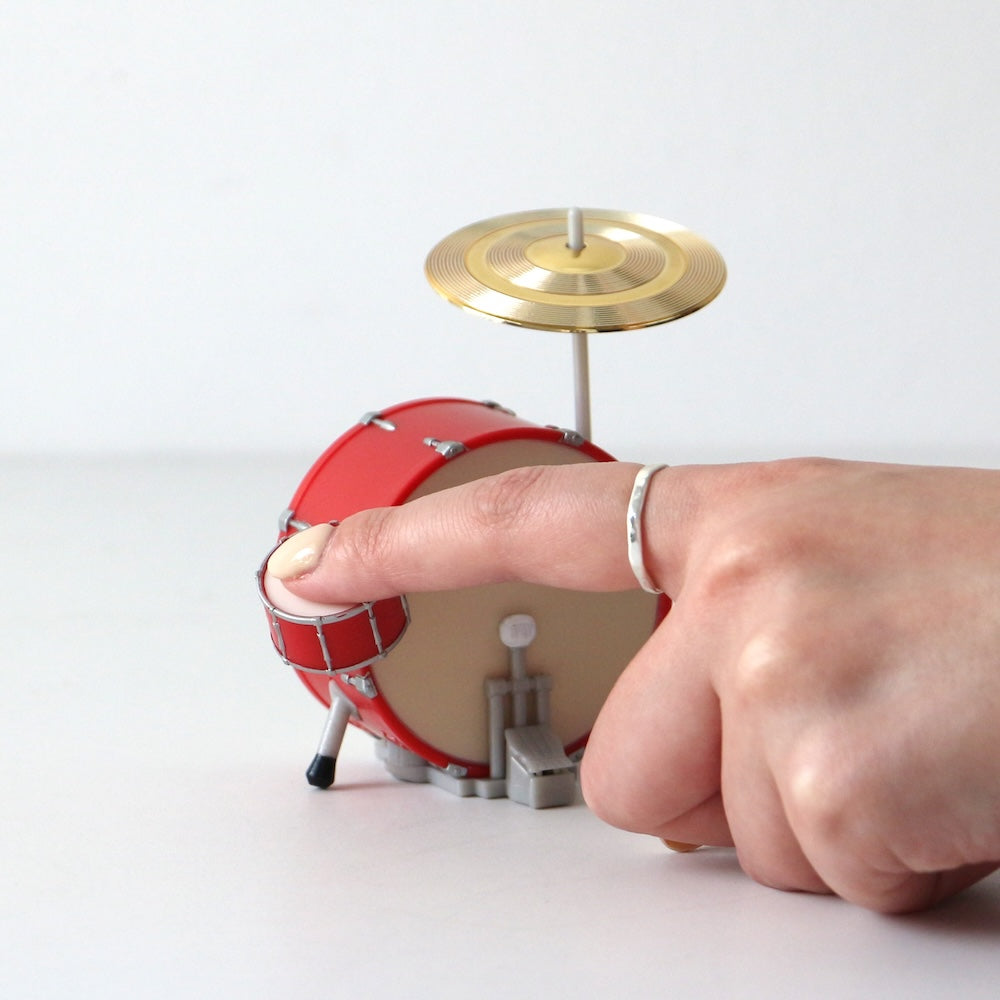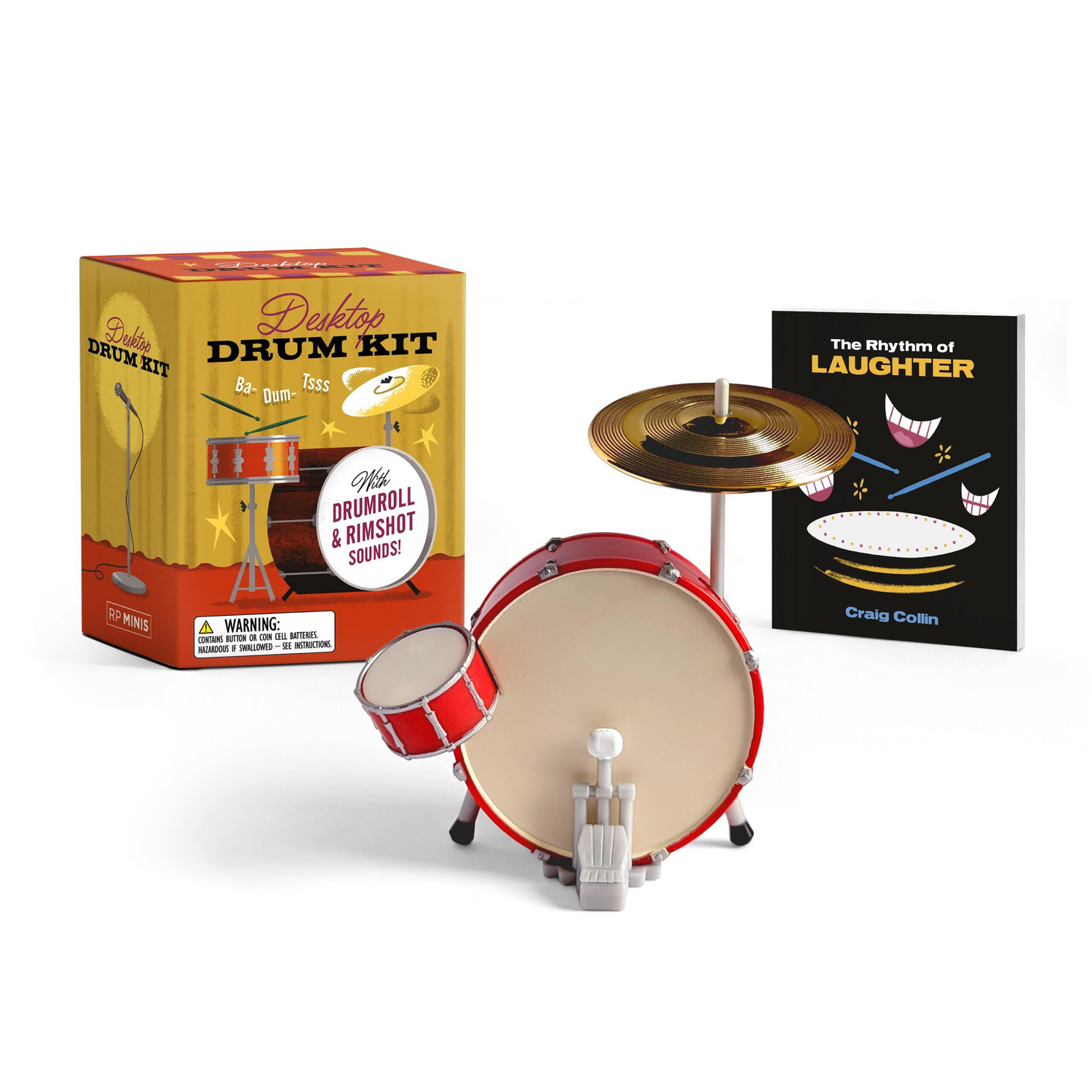 パーツを叩いて楽しむミニチュアドラムキット。バスドラム・スネアドラム・シンバルの3つのパーツを自由に組み合わせて、オリジナルのサウンドパフォーマンスを楽しめます。スネアを長押しすることでドラムロールが流れるので、シンバルと組み合わせることで結果発表のような演奏も可能。スタンドアップコメディの基本を解説した、フルカラーのイラスト入りブックレット付き。ミニチュアながら本格的なリズム体験を味わえるアイテムです。