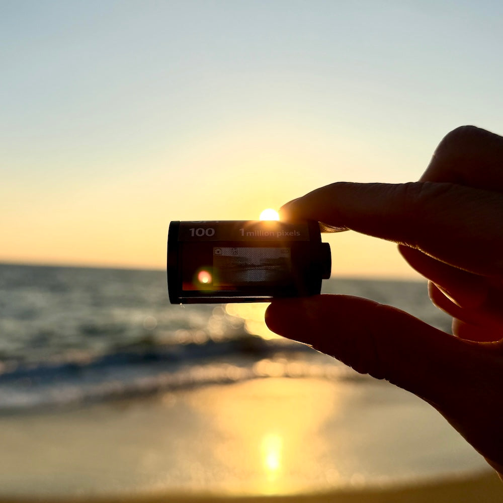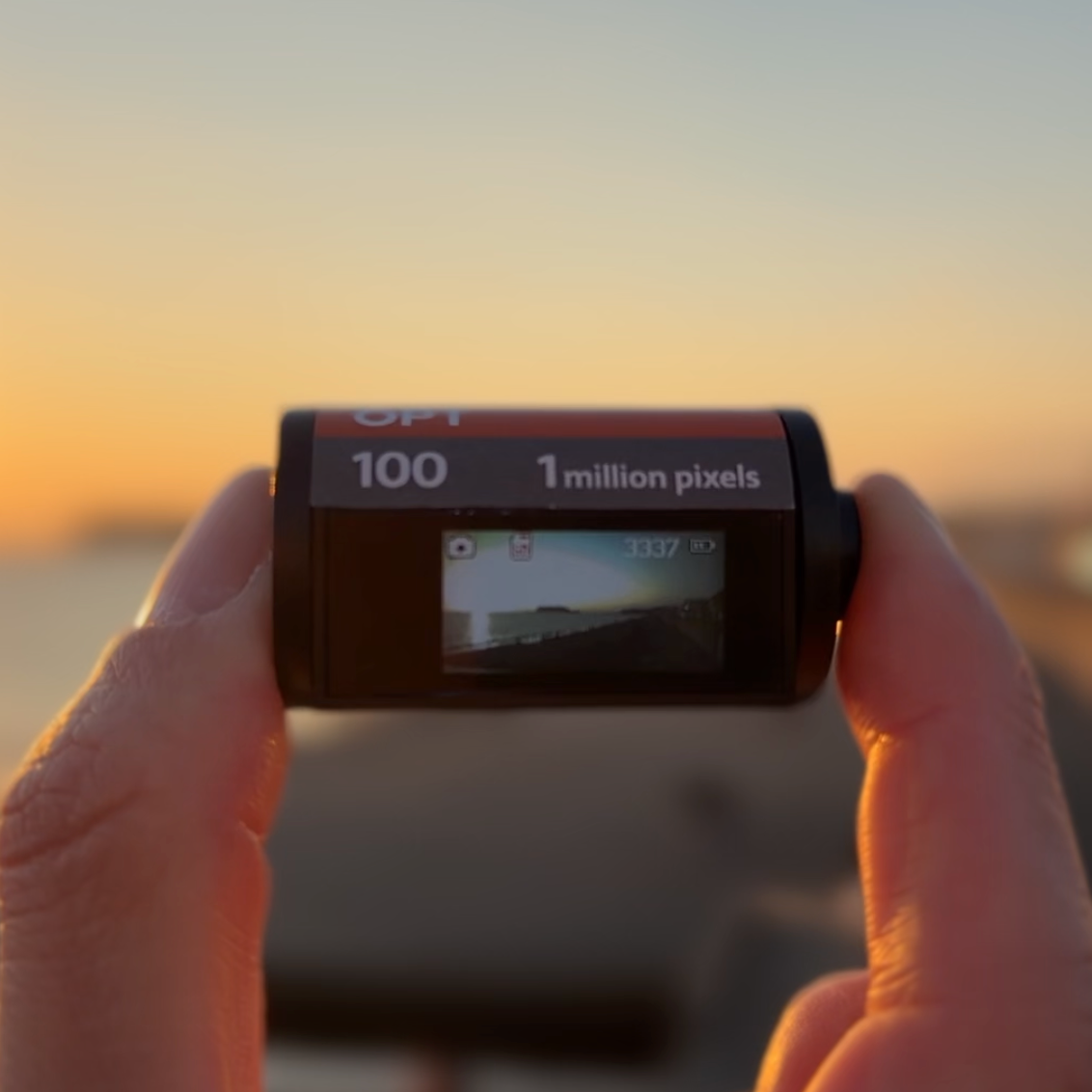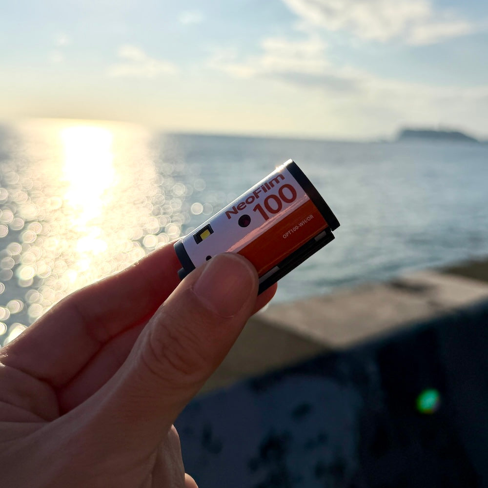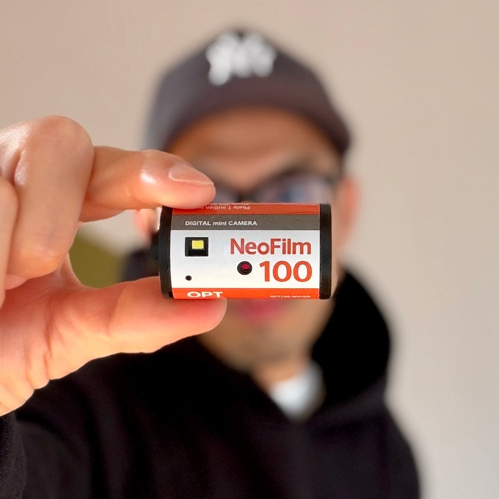 スマホで写真や動画を撮ることに、ちょっとしたハードルを感じていて。構えた瞬間に撮りますよって空気が生まれるのがどうも苦手。でも、日々のなかで残しておきたい瞬間はあるわけで。そのあいだの気分をゆるく埋めてくれたのが、このフィルム型の小さなカメラだった。実際のカメラフィルムよりひと回り小さく、重さはほぼ同じ。超ミニサイズってこと。コンビニに行く時も、朝の有酸素の時も、飲みに行く時も、必ずこいつをポケットに入れて出かけるようになった。このサイズと形のせいか、撮る瞬間の構える空気が全く生まれない。相手も自然体のままいられる。静止画でも動画でも、そのときの空気ごと保存できる感じ。気負わずにさくっと撮れるのに、あとで見返すと、その日の機嫌まで戻ってきちゃう。エモい画質も最高にいい味を出してる。友達と飲みに行ってなんとなく撮った一枚や数秒の動画が、あとで見返すとめちゃめちゃお気に入りの一枚になったり。友達でも恋人でも家族でも、あとで思い出になるのって、特別な日より、一緒にただ過ごしていただけの時間だったりする。そういう空気まで写してくれるカメラです。(商品説明欄の下の方に僕が作ったリールがあるので、実際にどんな写真・動画が撮れるか見てみてください!)