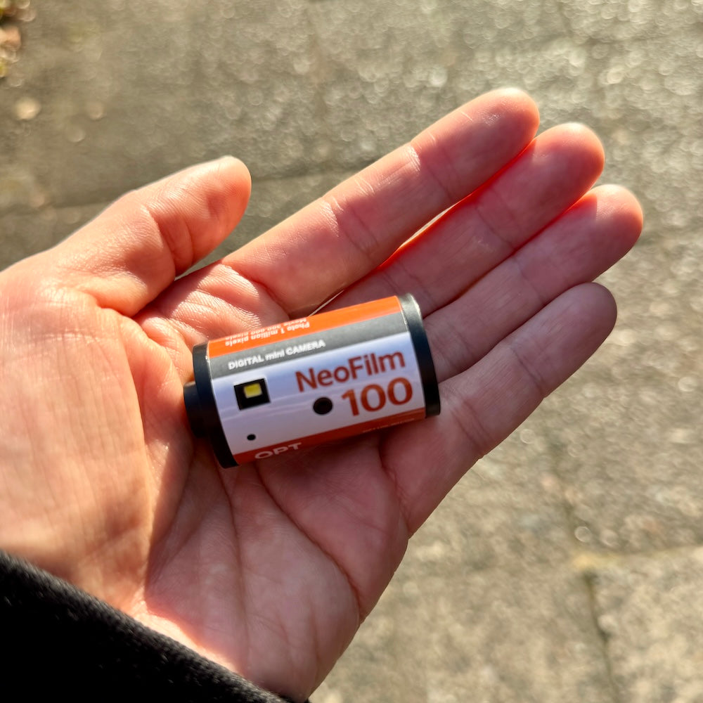 スマホで写真や動画を撮ることに、ちょっとしたハードルを感じていて。構えた瞬間に撮りますよって空気が生まれるのがどうも苦手。でも、日々のなかで残しておきたい瞬間はあるわけで。そのあいだの気分をゆるく埋めてくれたのが、このフィルム型の小さなカメラだった。実際のカメラフィルムよりひと回り小さく、重さはほぼ同じ。超ミニサイズってこと。とりあえずコンビニに行く時も、朝の有酸素の時も、飲みに行く時も、必ずこいつをポケットに入れて出かけるようになった。このサイズと形のせいか、撮る瞬間の構える空気が全く生まれない。相手も自然体のままいられる。静止画でも動画でも、そのときの空気ごと保存できる感じ。気負わずにさくっと撮れるのに、あとで見返すと、その日の機嫌まで戻ってきちゃう。これを持つようになってから、いつもの景色が少しだけ違って見えるようになった。毎朝の海までのルートでも、光の入り方ひとつで、その日の景色がまるで別物に見える。友達と飲みに行ってなんとなく撮った一枚や数秒の動画が、あとで見返すとめちゃめちゃお気に入りの1枚になったり。友達でも恋人でも家族でも、あとで思い出になるのって、特別な日より、一緒にただ過ごしてただけの時間だったりする。そういう空気までちゃんと写してくれるカメラです。