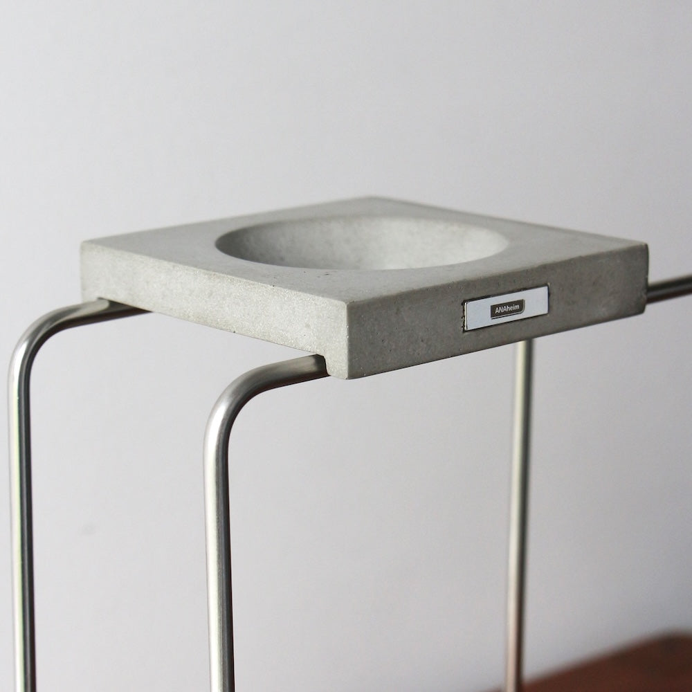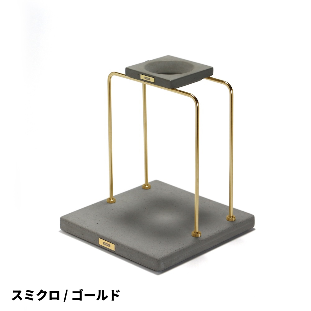 存在するだけで美しい。長年コンクリートの型枠工事に携わってきた職人の技術と知識を活かし、モルタルとステンレスでシンプルに仕上げました。ハンドドリップを楽しむひと時をこのスタンドとともにお過ごしください。ナチュラルカラーのモルタルにはシルバーのスタンドとプレートを。モダンな雰囲気のスミクロモルタルにはゴールドのスタンドとプレートを組み合わせました。ひとつひとつ 手作りの風合いをお楽しみいただけます。