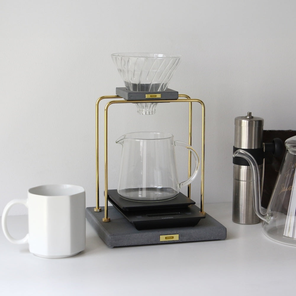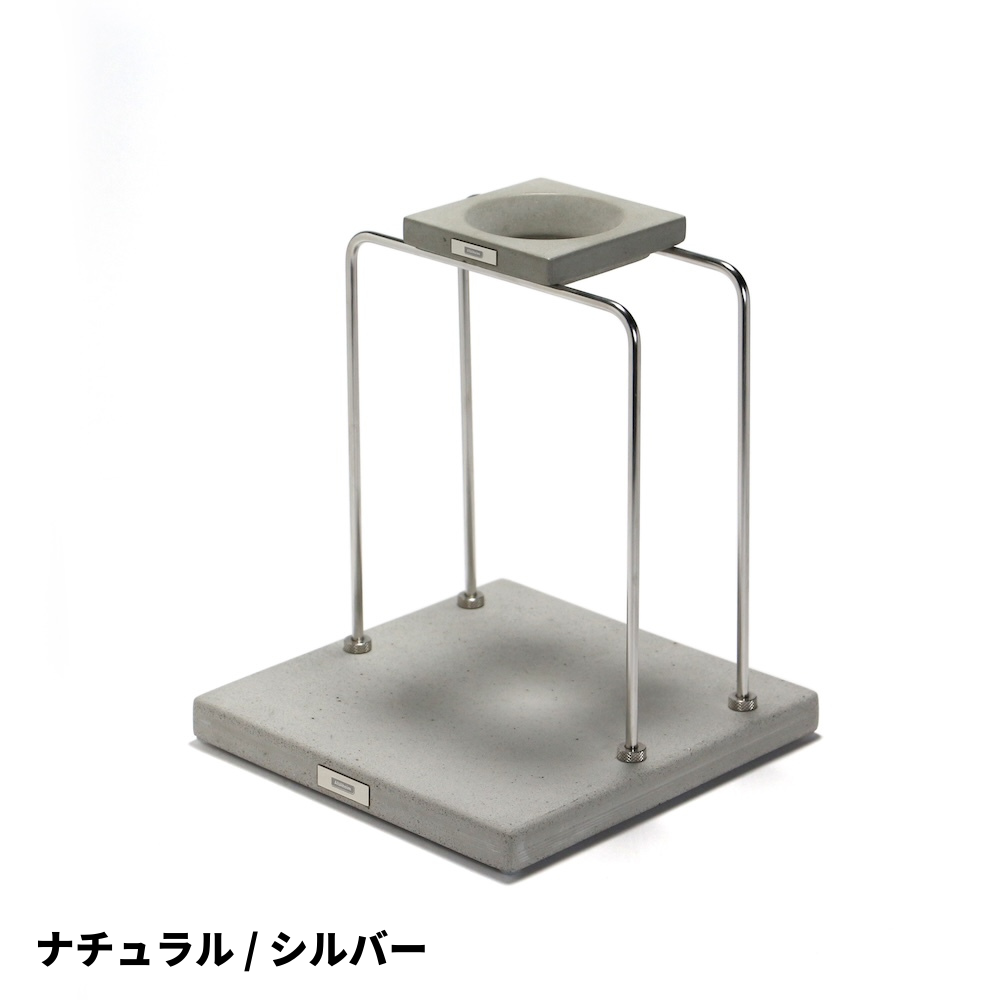 コーヒースケールを置いてハンドドリップできる、本格志向のユーザーに向けたシングルドリッパースタンドです。土台と同色のモルタル製ドリップホルダー1点付属されます。