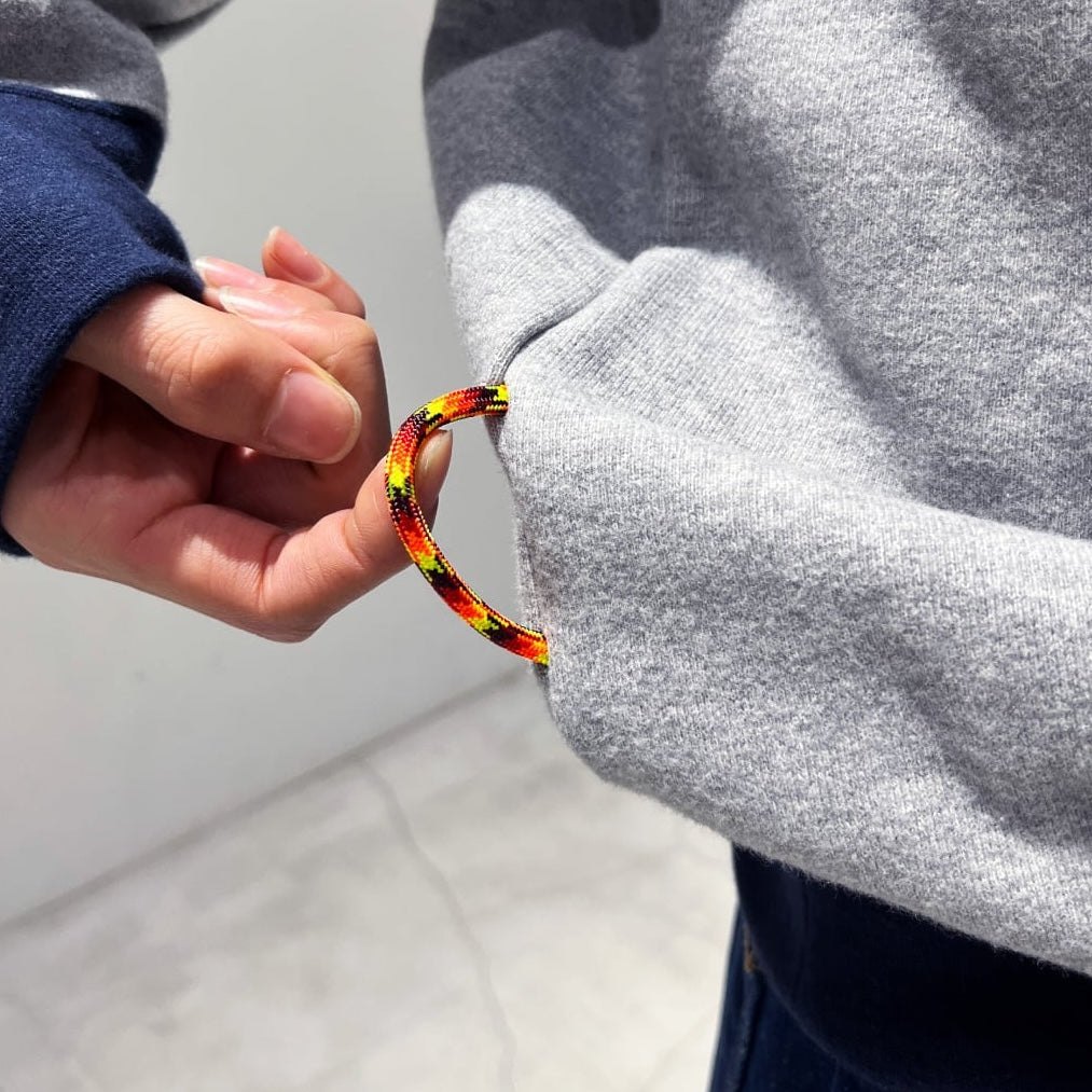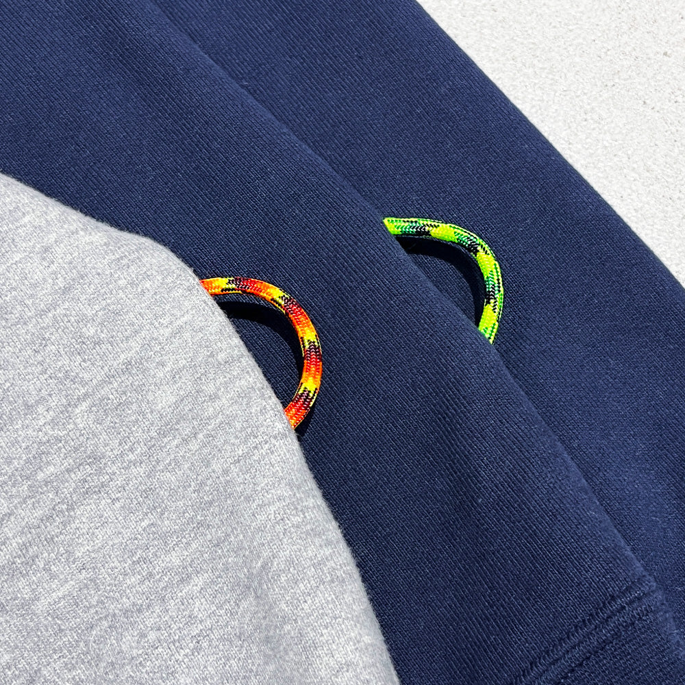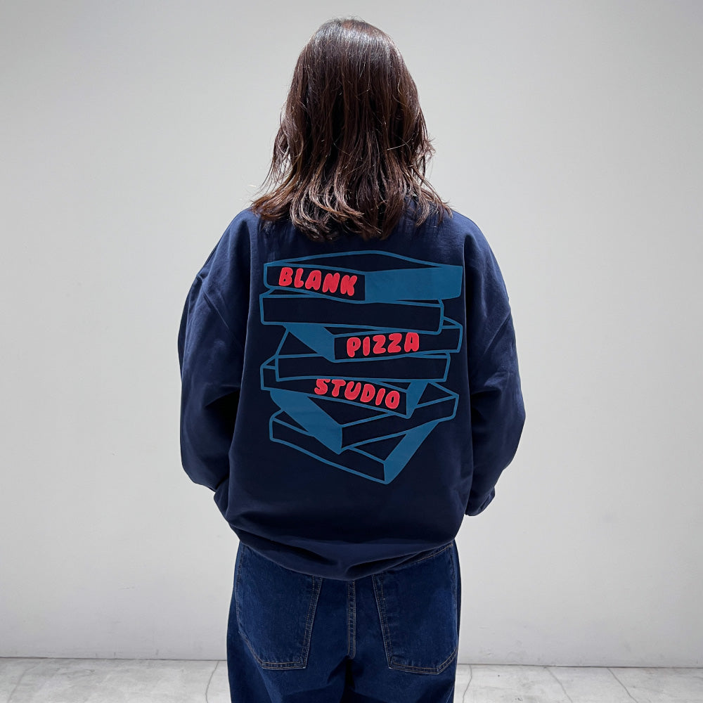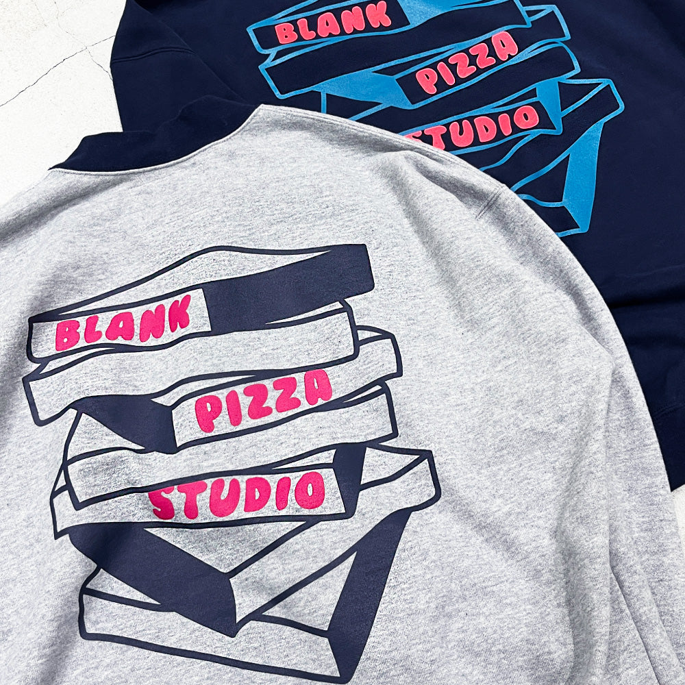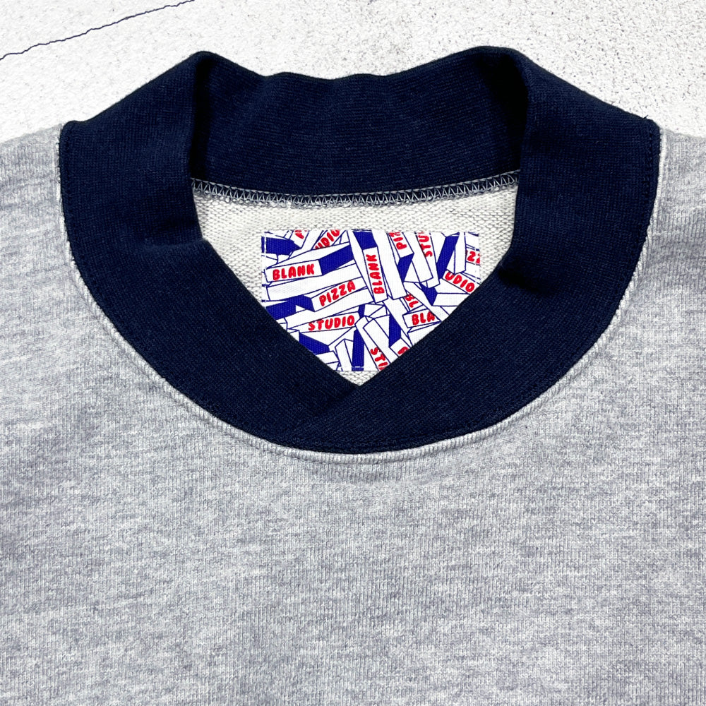ゲームシャツのようなネックと裾脇に挟み込んだピスネーム代わりのビビッとなカモ柄パラコードが特徴な裏パイルスウェット。サイズ感はボディの王様GILDANをサンプリングした身幅に少しゆとりのある仕様。洗いかかったヴィンテージライク生地を使用しているので、着た瞬間から馴染み良く気持ちのいい肌触り。日常で使いやすいシンプルさと他にはないギミックを入れ込んだ"blank pizza studio"らしいシンプルながら少しクセを残した仕上がりになりました。