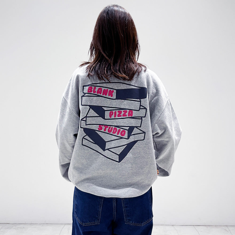 ピザの箱をモチーフにしたキャッチーなプリントと色々な着こなしが可能なドローコードが特徴なアイテム。ギュンギュンに絞って着ちゃってください。