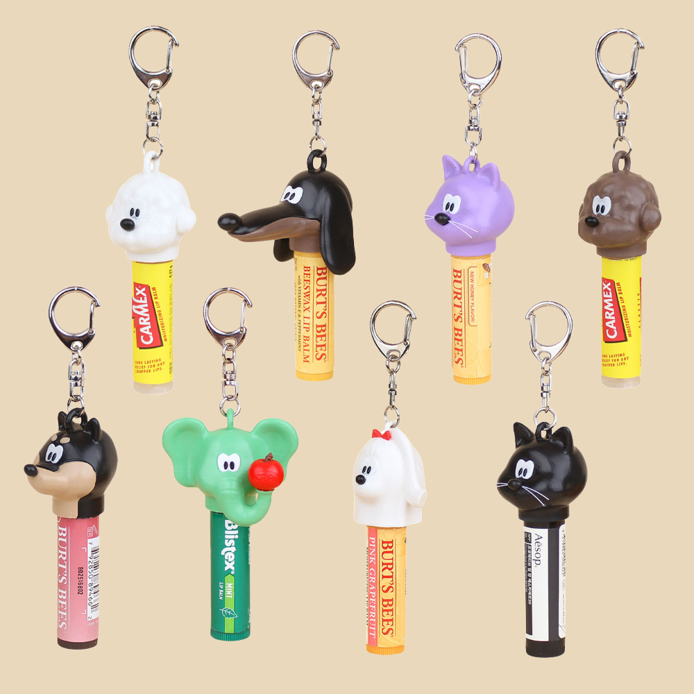 小さいのにさり気ない存在感が可愛いリップクリームカバー。見かけたらほっておけない愛らしさがあります。リップやネイルオイルなどサイズが合うものをセットして常に持ち歩く相棒として愛でてください。